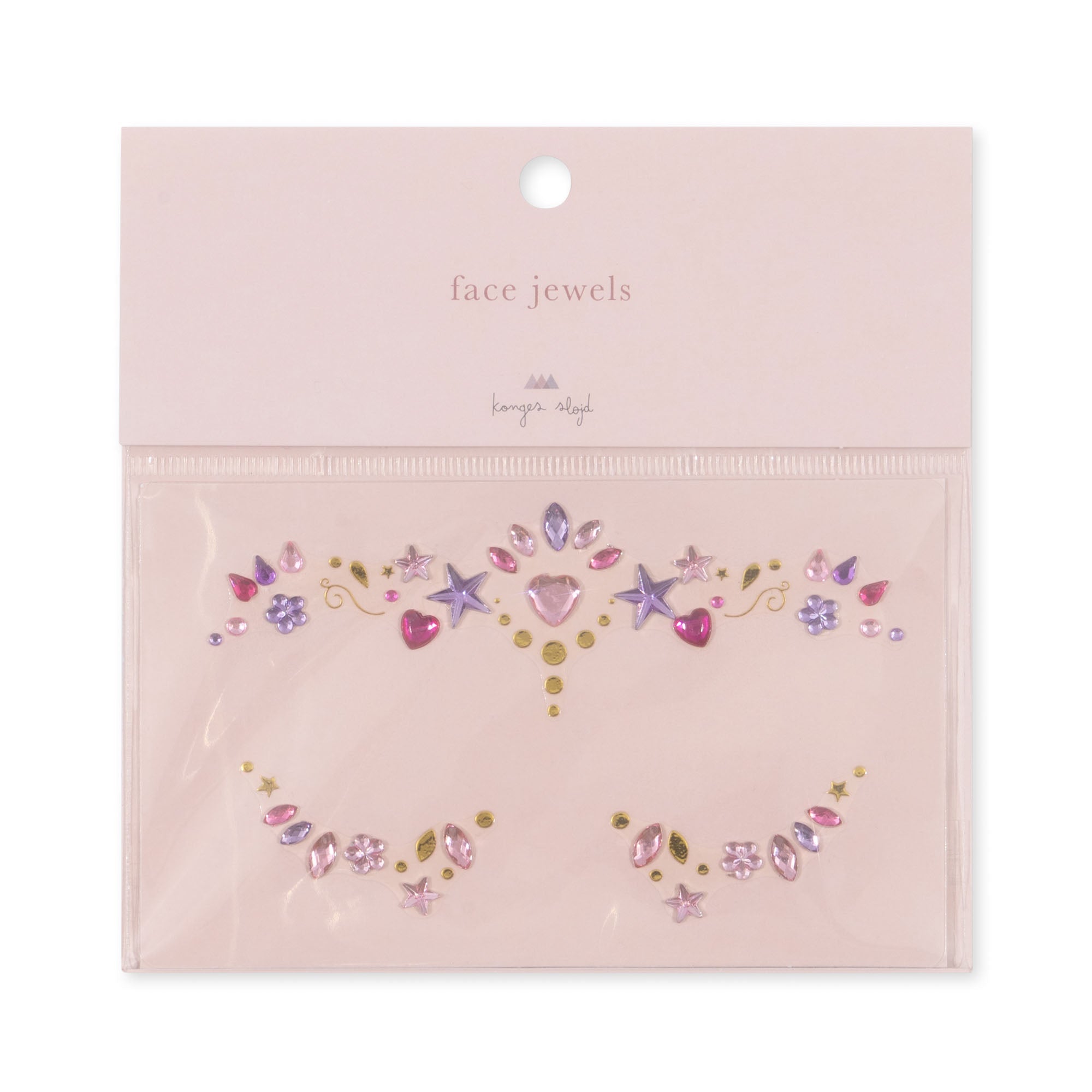 Maska z trblietavých "drahokamov" na tvár. Zábavná hra pre vašu malú parádnicu. Maska má tri časti - na čelo a dve pod oči, jednoducho ju nalepíte na tvár a z vášho dievčatka je razom princezná alebo víla.