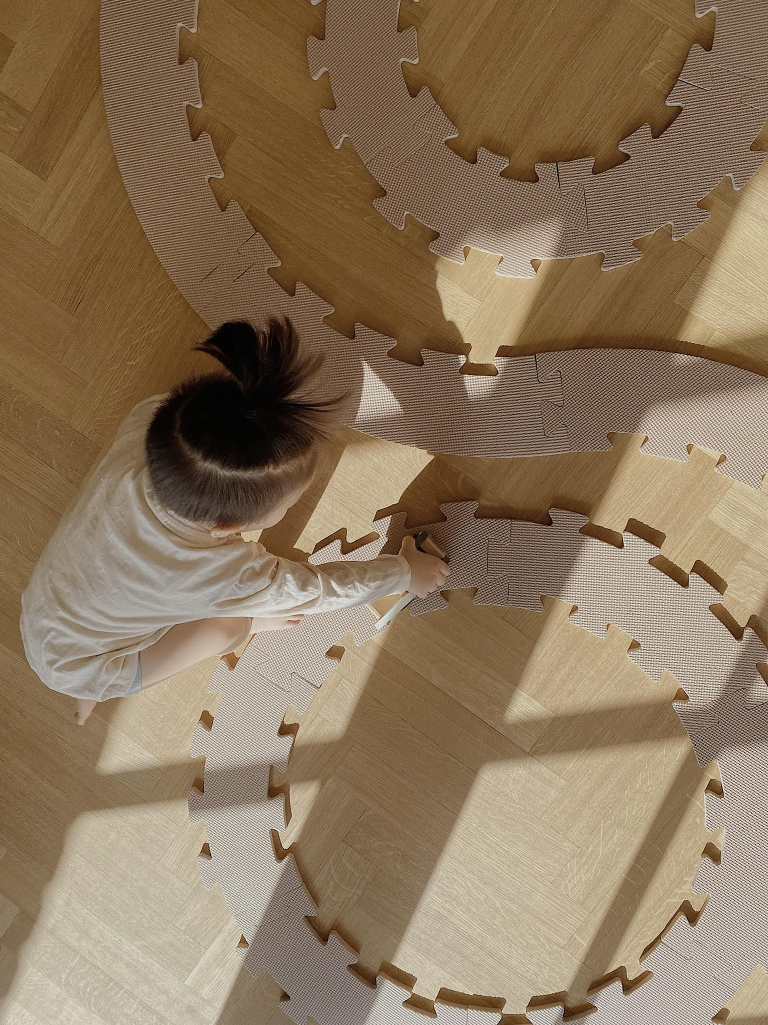Kruhové penové podložky dánskej značky That's Mine sa skladajú ako "puzzle". Vďaka neutrálnym farbám sú vhodné do každého interiéru. Využijete ich pre bábätká, ktoré ležia, ale aj pre väčšie, lezúce deti, pre ktoré podložka vytvorí pohodlný priestor pre hru.