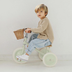 Nadčasová, minimalistická, štýlová, s prúteným košíkom, typickým pre značku Banwood. Trojkolka je vhodná pre deti od dvoch rokov. Dizajnovaná je tak, aby vydržala generácie. Má mäkko polstrované dubové sedadlo, pedále z dubového dreva a detaily z vegánskej kože. Prútený košík je štýlovým doplnkom, ktorý si deti zamilujú.