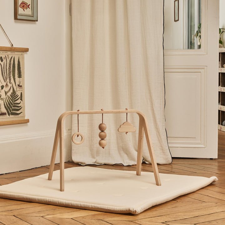 Hrazdičku umiestnite na zem, napríklad na detskú hraciu podložku Charlie Crane Tami, ktorú nájdete tiež v našej ponuke.