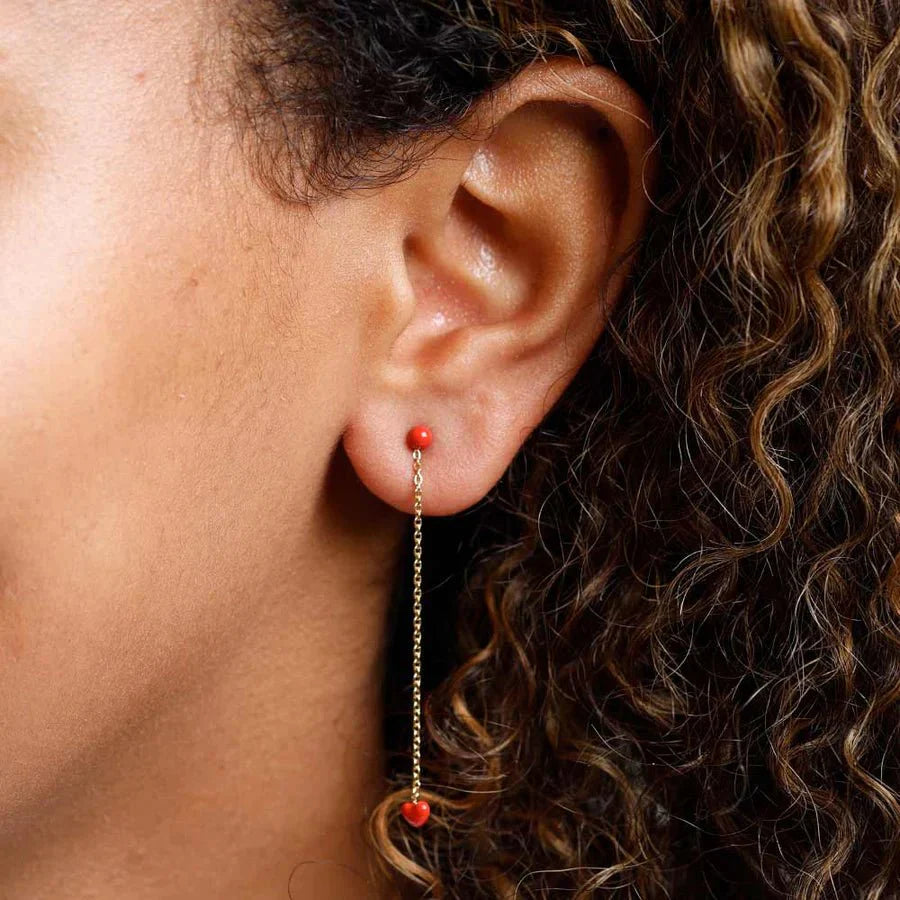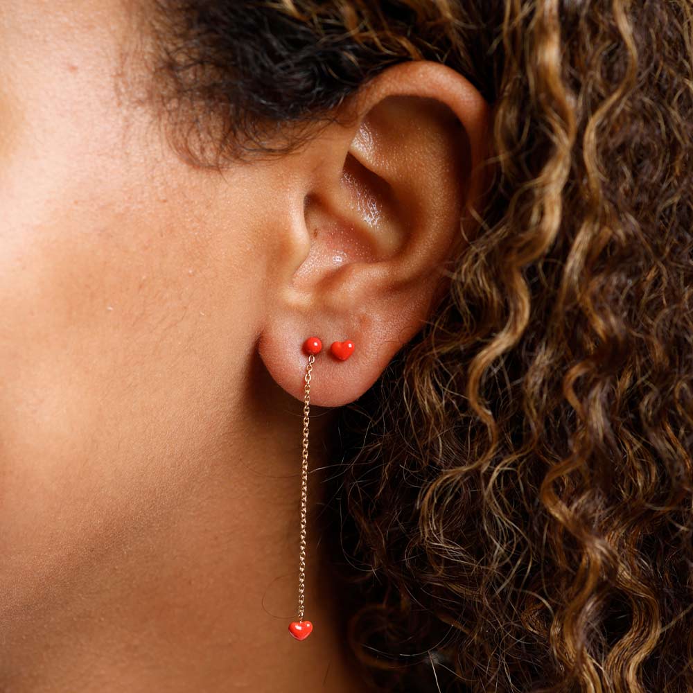 Retiazkové náušnice z kolekcie Little Big Love s detailom malého červeného srdiečka. Minimalistické a zároveň pôsobivé šperky.