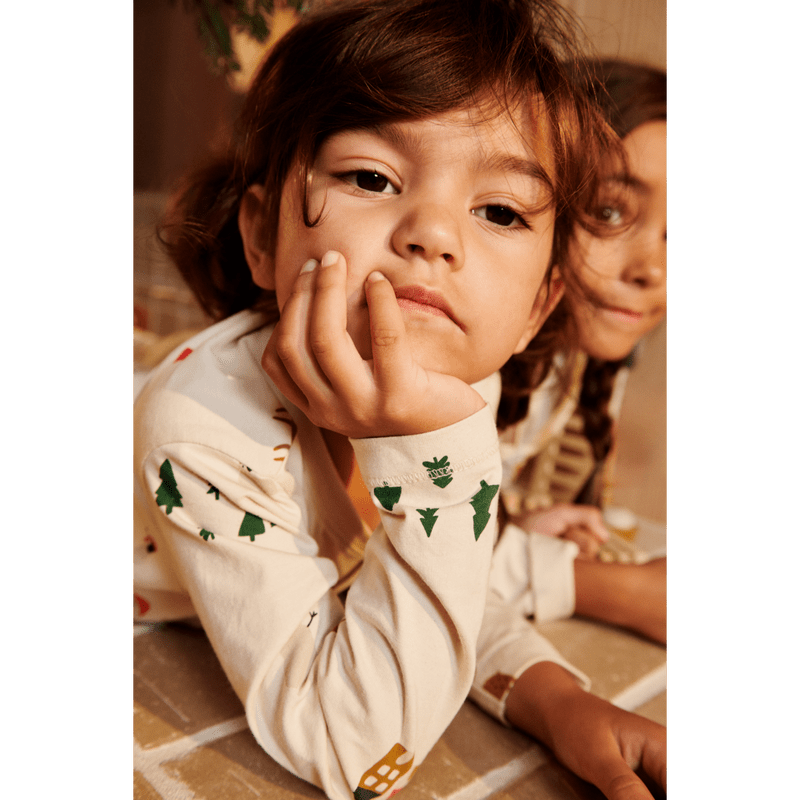Dvojdielne pyžamo s dlhým rukávom Liewood Wilhelm s vianočnými motívmi. Príjemný materiál, pohodlný strih, jednoduché zapínanie na cvočky pri vrchnom dieli.