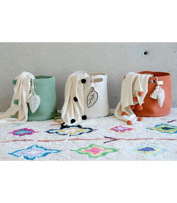 Koberec je vyrobený zo 100% bavlny a je možné ho prať v práčke (s kapacitou 9 kg). Pri výrobe bola použitá iba prírodné farbivá, a tak je koberec úplne bezpečný. Vďaka použitému materiálu je koberec ľahký, veľmi mäkký a ľahko sa s ním manipuluje.