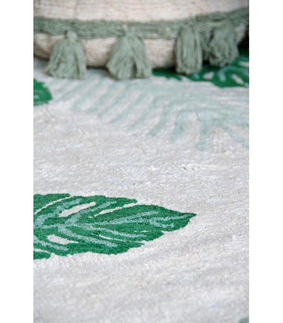 Vďaka neutrálnemu designu je tento koberec vhodný do dievčenských aj chlapčenských izbičiek (a samozrejme aj do obývacích izieb alebo spálne). Motív listov tropických rastlín vkusne doplní a osvieži interiér.