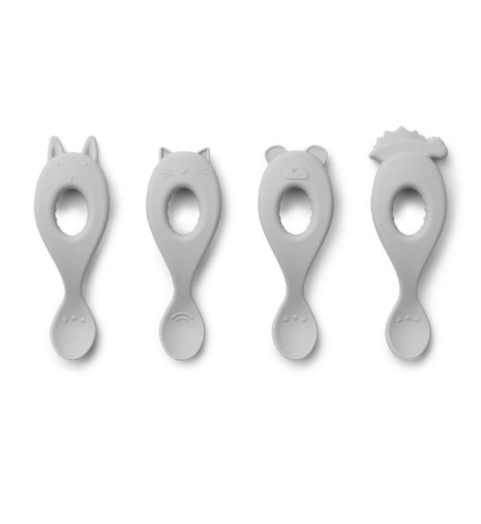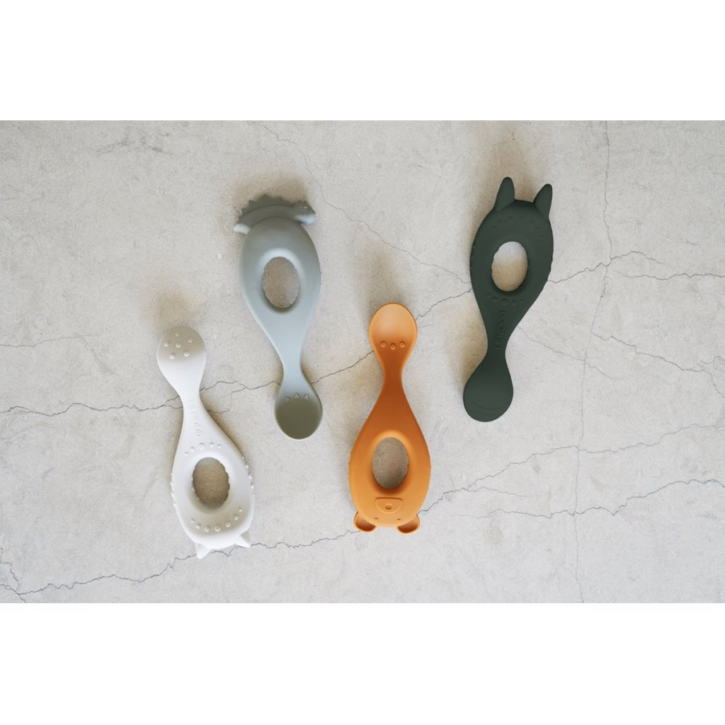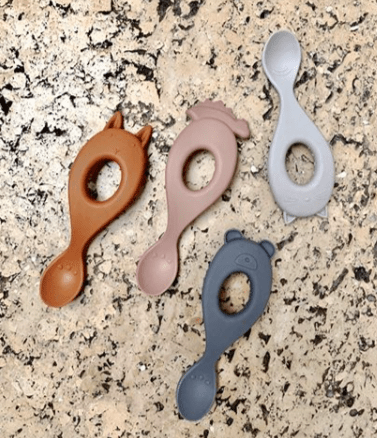 Roztomilé silikónové lyžičky pre najmenších. Ideálne na kašičky a prvé príkrmy. Lyžičky sú vyrobené zo 100% silikónu neobsahujúceho BPA, na dotyk sú veľmi príjemné a pekne sa s nimi je. Na časti lyžičky, ktorú dieťa vkladá do úst, sú malé výstupky, vďaka ktorým dieťa spozná, ako hlboko môže lyžičku do pusinky vložiť. S roztomilými zvieratkami pre veselšie stolovanie. Vhodné do umývačky riadu.