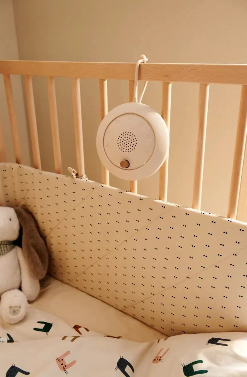 Liewood Jordi ponúka celkom 8 typov ružového šumu, každý pod svojim tlačidlom. Zároveň má časovač, ktorým nastavíte, či má hrať 30, 60 alebo 90 minút. Prístroj je kompaktný a ľahký, a tak nie je problém vziať ho so sebou na cesty. Má USB dobíjanie. Plne nabitý funguje 12 hod.