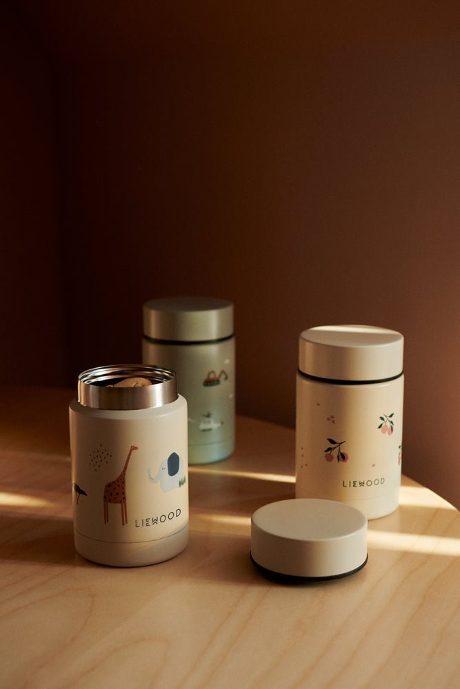 Krásna a praktická termo-dóza na jedlo z nerezovej ocele. Dóza má dvojitú oceľovú stenu, ktorá udrží teplotu teplého jedla až šesť hodín a chladného jedla až osem hodín. Ak trávite dni vonku s jedlom pripraveným z domova, je pre vás termo-dóza Liewood správnou voľbou.