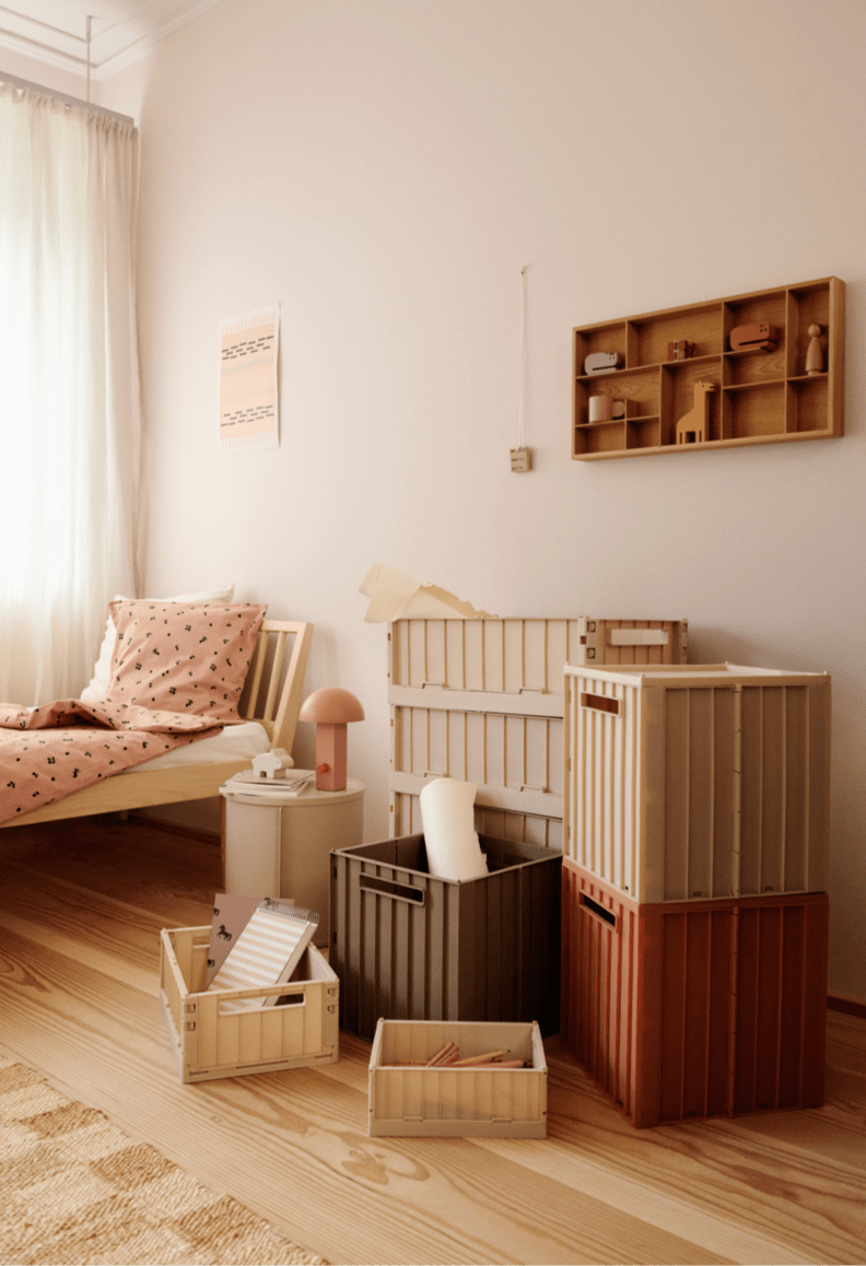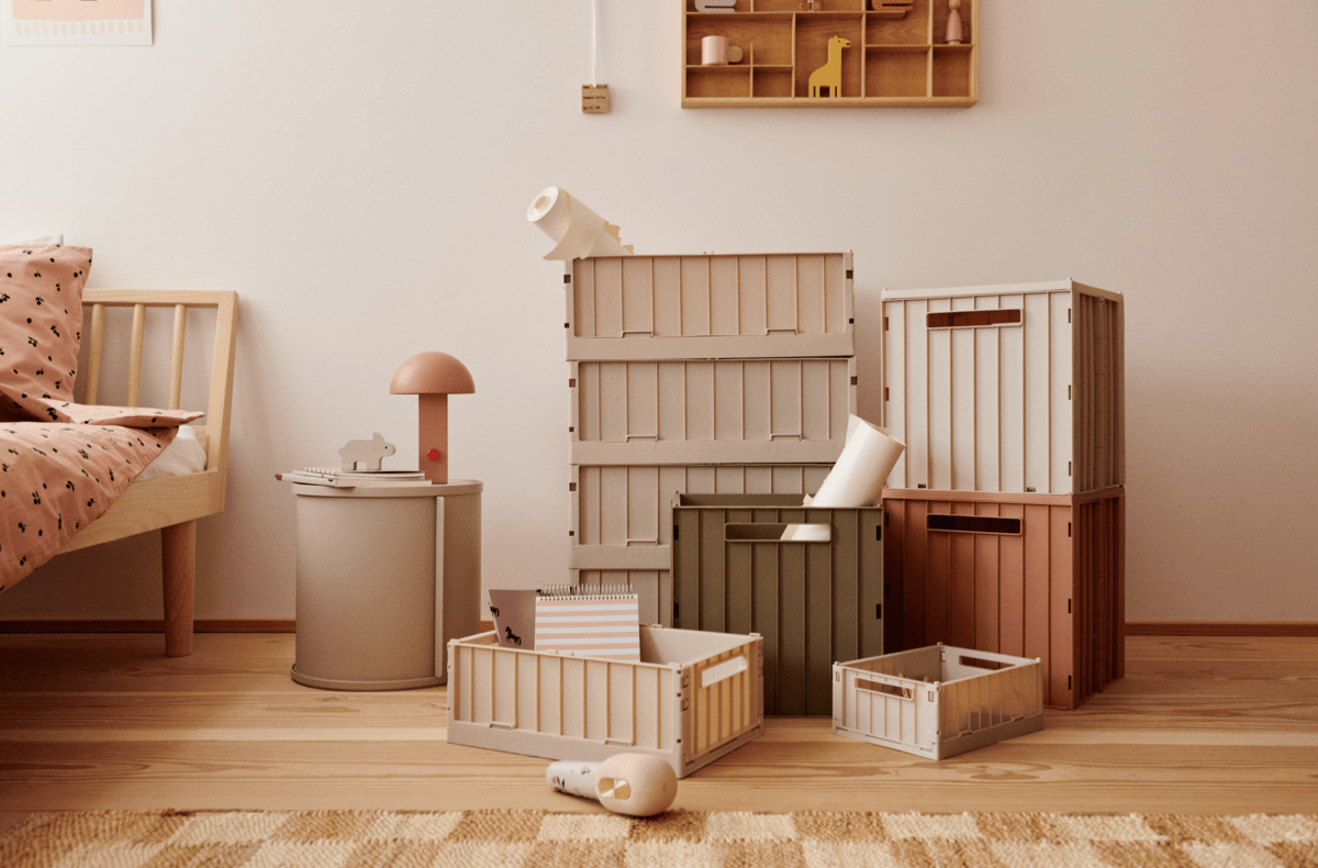 Úložné boxy Liewood Elijah s vekom sú obľúbenými funkčnými a zároveň štýlovými doplnkami do detských izieb. Boxy je možné sklopiť, keď sa nepoužívajú, a sú stohovateľné, môžete ich vŕšiť na seba.