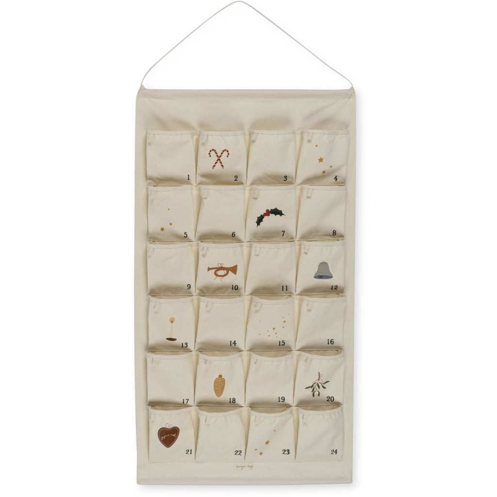 Vianočnú náladu navodíte mnohými spôsobmi a jeden z tých, ktoré deti milujú najviac, sú adventné kalendáre. Adventný kalendár Konges Slojd je vyrobený z pevnej bavlnenej tkaniny, a tak ho môžete používať opakovane po mnoho rokov - meniť sa budú len darčeky v ňom tak, ako porastú vaše deti :-).