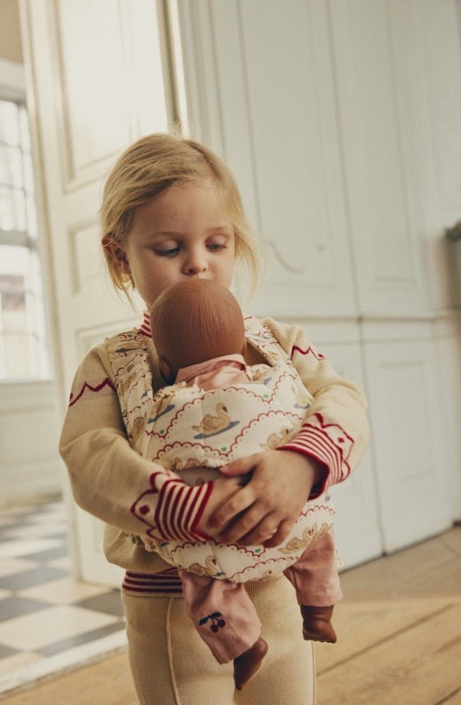 Aby dievčatká mohli byť ako ich mamičky. Nosítko pre bábiky Konges Slojd. Zo 100% organickej bavlny, s elastickými popruhmi umožňujúcimi ľahkú manipuláciu. Nosítko je ľahké, pohodlné a ľahko sa používa. Bábiku do neho môžete umiestniť čelom aj chrbtom k dievčatku.