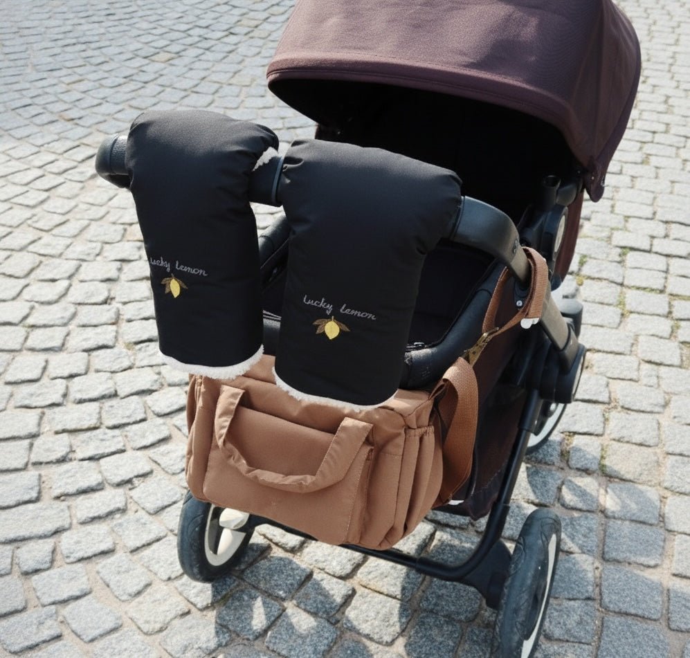 Nemrznite pri prechádzkach s kočíkom. Nepremokavé, vetruvzdorné, teplé a pohodlné rukavice s mäkkým plyšom vo vnútri. S povrchovou úpravou Bionic Finnish Eco, odpudzujúcou vodu a nečistoty. Univerzálna veľkosť, vhodné na všetky typy kočíkov. Rukavice na madlo kočíka pripínajú cvoky.