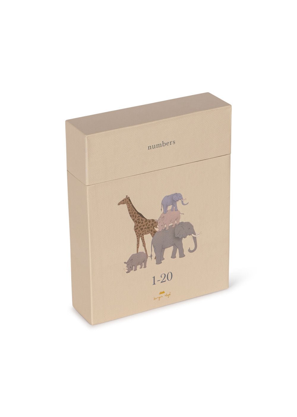 Ako sa naučiť čísla zábavne? S kartičkami Konges Slojd s číslami 1 - 20 na jednej strane a zodpovedajúcim počtom vyobrazených motívov na strane druhej.
