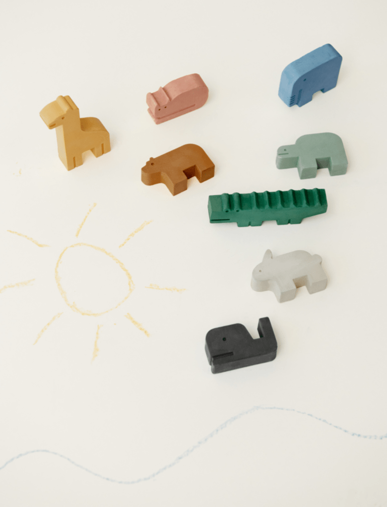 Unikátne kriedy v tvare zvieratiek na kreslenie na tabuľu aj na chodník. V balení nájdete deväť kried, s ktorými bude deti kreslenie baviť, v rôznych farbách. Zvieratká majú plochú spodnú časť, a tak "stoja".