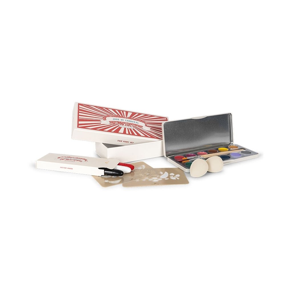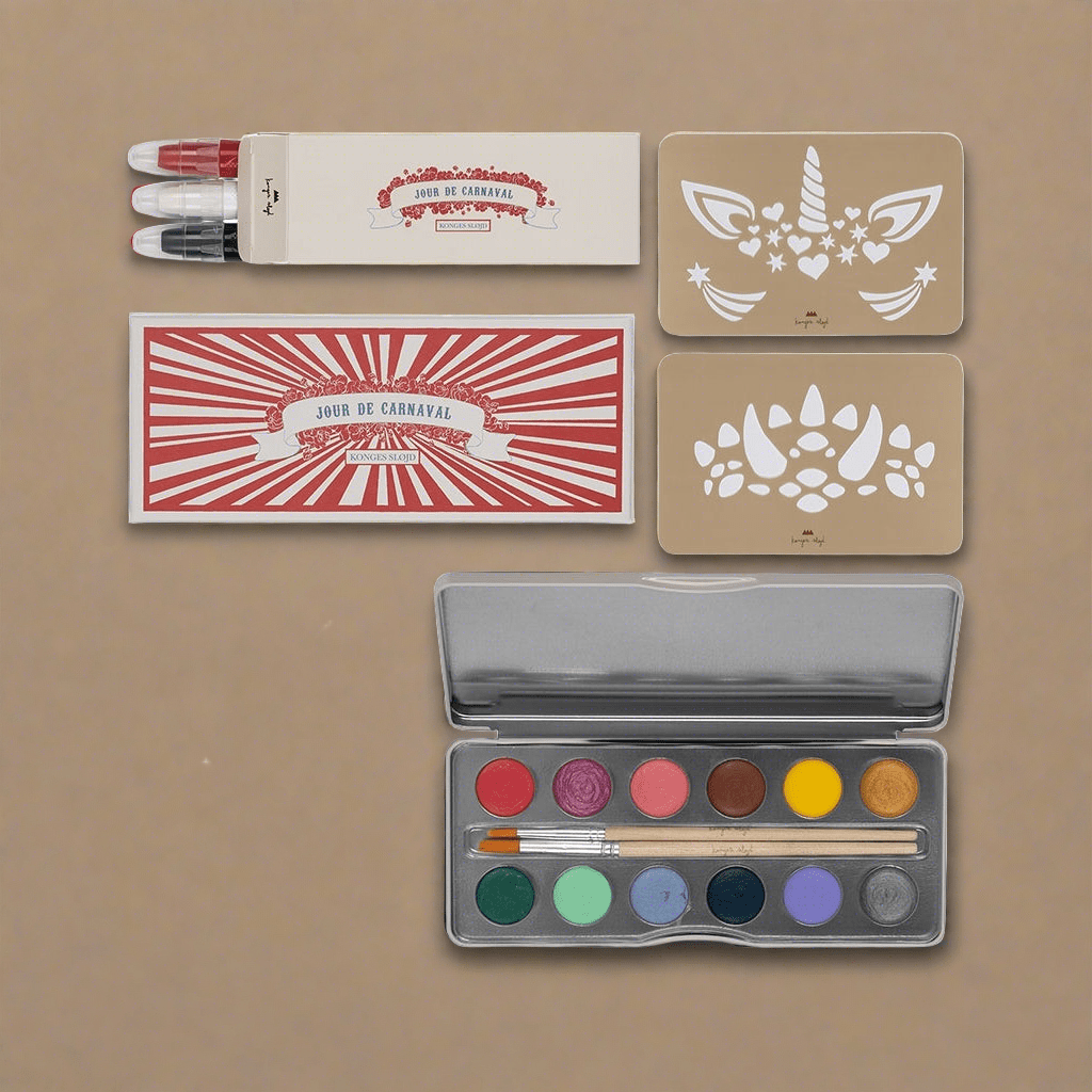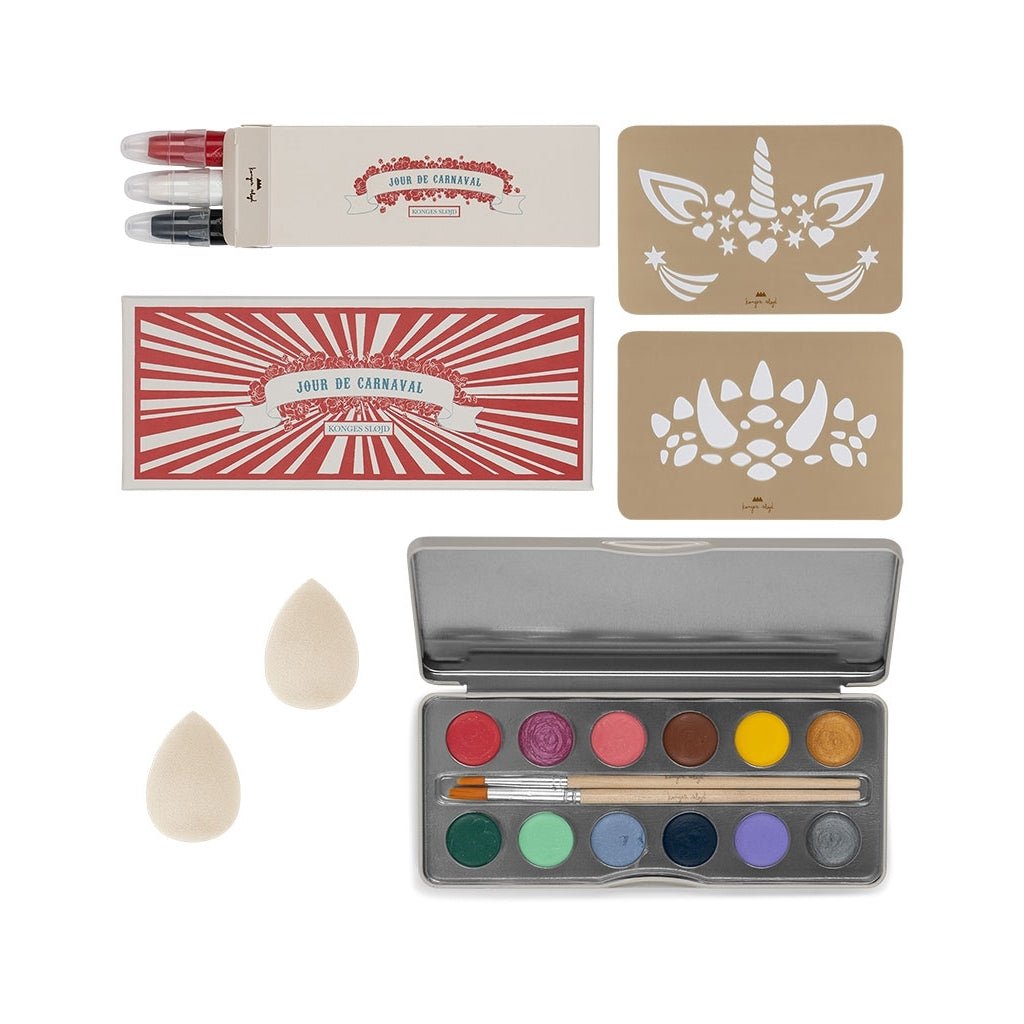Set na maľovanie na tvár a telo. Zábavná a kreatívna hra pre vašu malú princeznú. Set obsahuje okrem farieb a krajónov aj dve opakovateľne použiteľné šablóny na maľovanie na tvár a telo.
