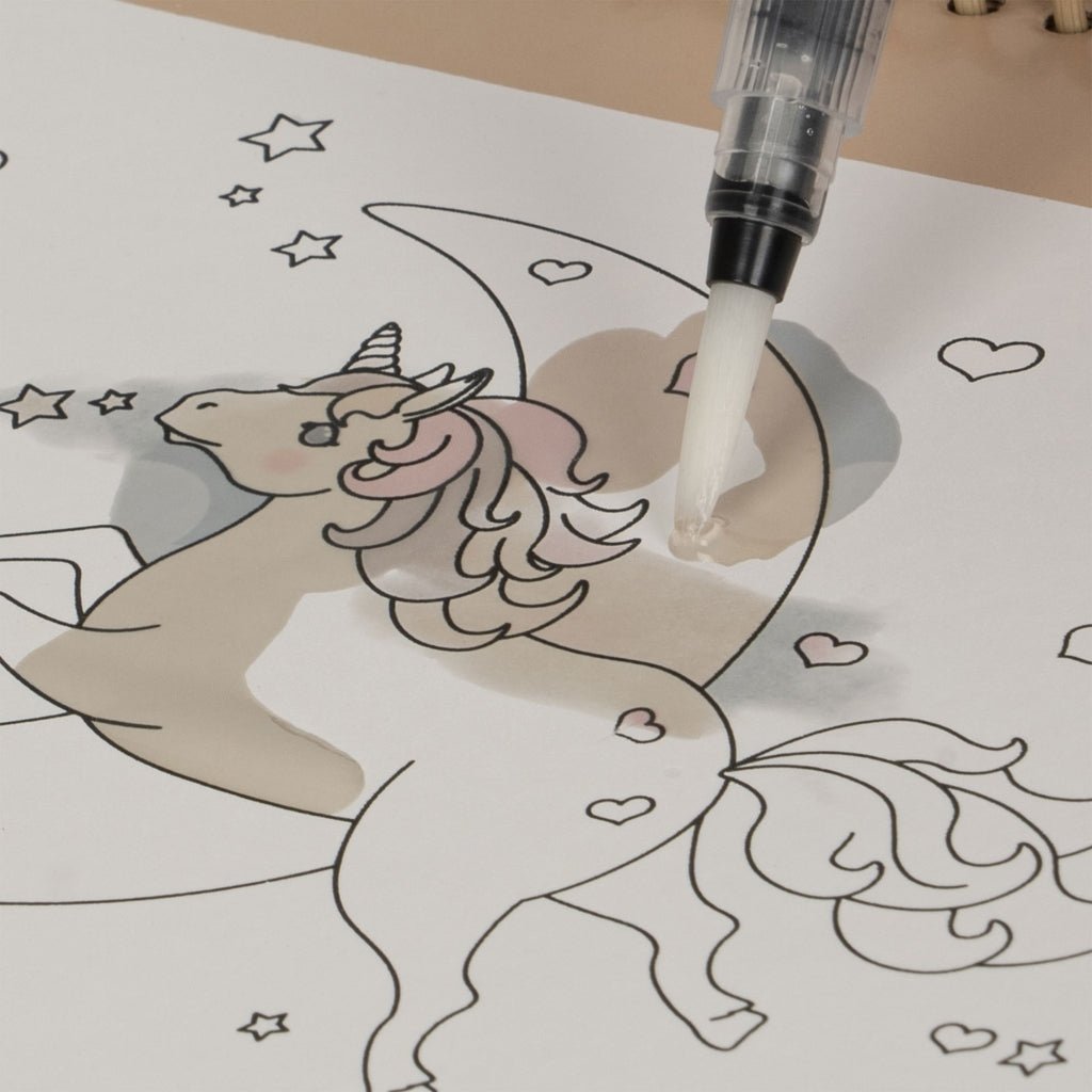 Opakovateľne použiteľné omaľovánky. Kreslí sa do nich vodným perom, ktoré je súčasťou balenia. Obrázky majú načrtnuté kontúry, a keď je obrázok vďaka vodnému peru vlhký, farby vyvstanú. Keď obrázok uschne, farby zmiznú a vy môžete vymaľovávať znova.