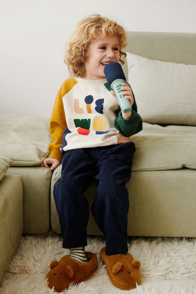 Nechajte malé hviezdy zažiariť s karaoke mikrofónom v jedinečnom dizajne Liewood. Mikrofón prepojíte prostredníctvom bluetooth so svojím telefónom, alebo iným zariadením. Potom už stačí len vybrať skladby na prehrávanie. Hlasitosť môžete ovládať ako na mikrofóne, tak na pripojenom zariadení. Na mikrofóne môžete tlačidlom meniť hlas medzi 10 rôznymi módmi. Je tiež možné prepojiť dva mikrofóny medzi sebou pre spev duetov. USB dobíjanie. Pre deti od 3 rokov.