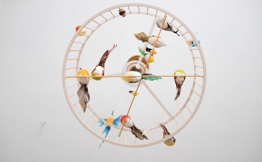 Detská stropná lampa, ktorá do vašej izbičky vnesie kúsok prírody. Luster je vyrobený z brezového dreva a je designovaný ako klietka, na ktorú sadajú vtáčikovia, vyrobení z ľahučkého polystyrénu a ručne farbených perí.