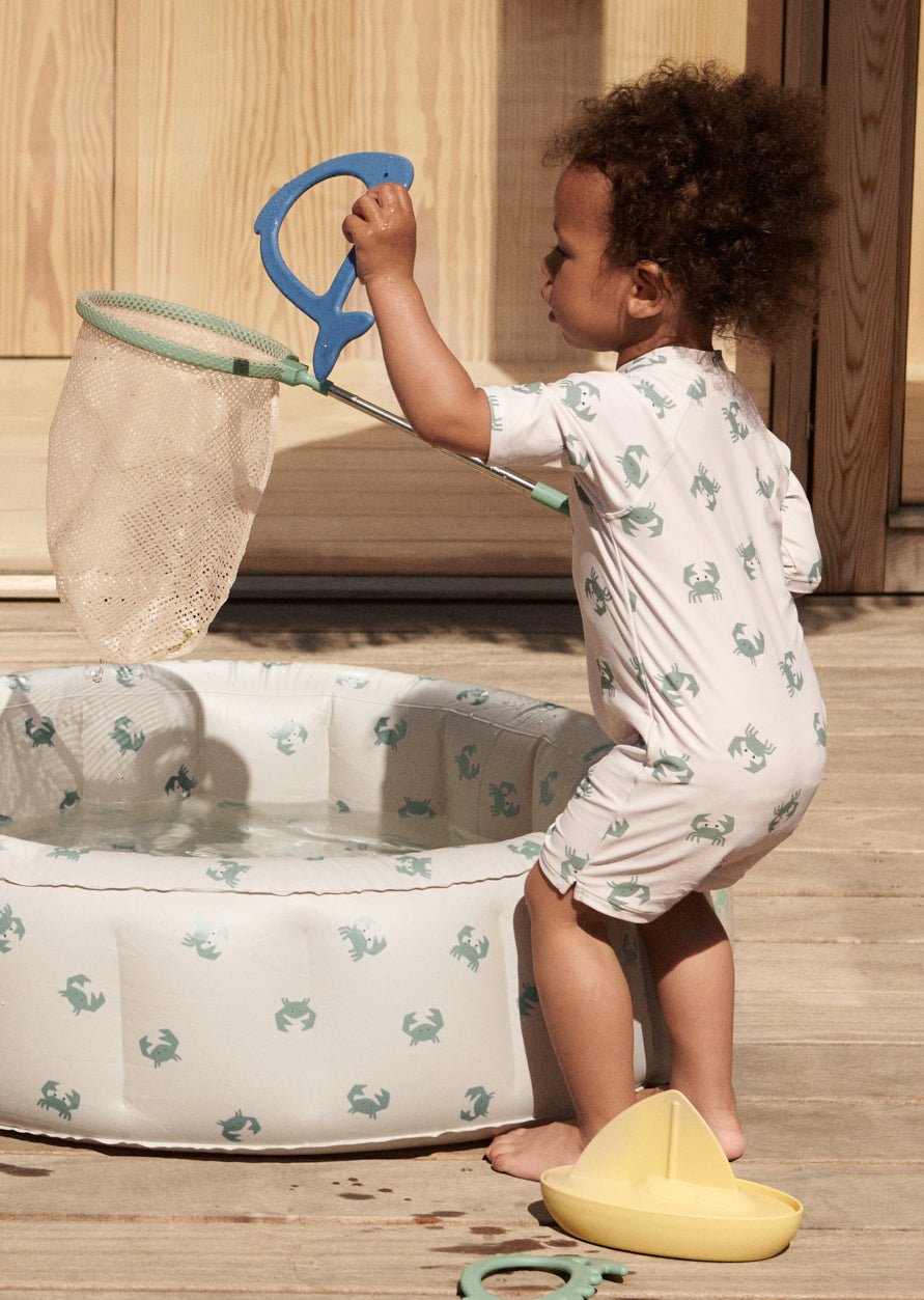 Praktický overal pre malé deti, ktorý v lete chráni pokožku pred nadmerným UV žiarením. Materiál poskytuje ochranu proti UV žiareniu - faktor 40+.