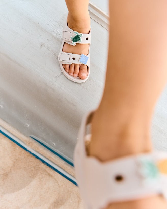 Ľahké jednodielne sandále z mäkkej EVA peny. Ľahko sa obúvajú a prispôsobia sa nohe vďaka nastaviteľným pásikom na suchý zips. Ergonomicky tvarovaná stielka poskytuje prirodzenú oporu a komfort. Sandále zdobia ozdoby v hravých tvaroch, ktoré môžete ľubovoľne premiestňovať. Športové a zároveň štýlové sandále pre všetky letné dobrodružstvá.