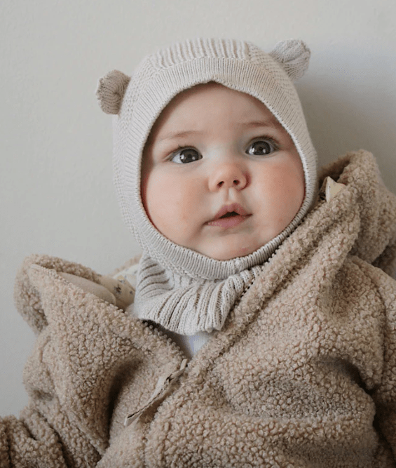 Vďaka pletenej kukle zostane hlavička aj krk detí v teple. Z mäkkej a príjemnej 100% organickej bavlny. S rebrovaním okolo tváre a krku pre čo najpohodlnejšie nosenie. S roztomilými medvedími uškami.