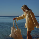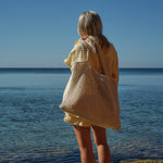 Dokonalý letný doplnok. S dostatočne dlhými ušami, aby sa dala dať cez rukoväť kočíka, a štýlovo cool cez rameno, aj keď so sebou deti nemáte. Priestranná, trendy taška. Ručne vyrobená v Indii, každý kúsok je tak originál.