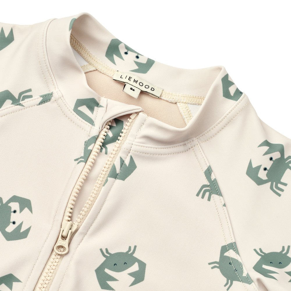 Praktický overal pre malé deti, ktorý v lete chráni pokožku pred nadmerným UV žiarením. Materiál poskytuje ochranu proti UV žiareniu - faktor 40+.
