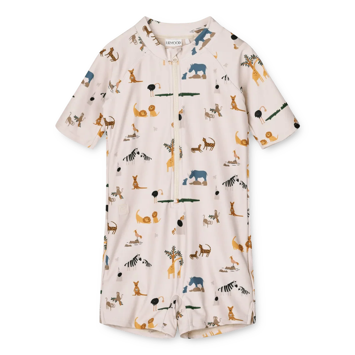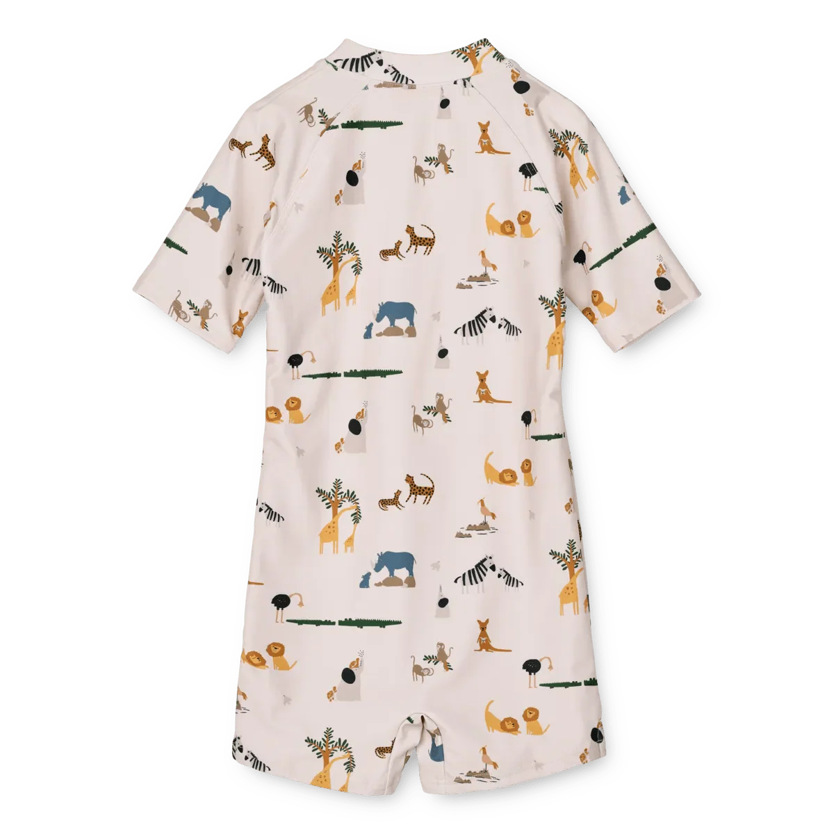 Plavkový overal SPF40 LIEWOOD Max Zvieratká All Together / Sandy
