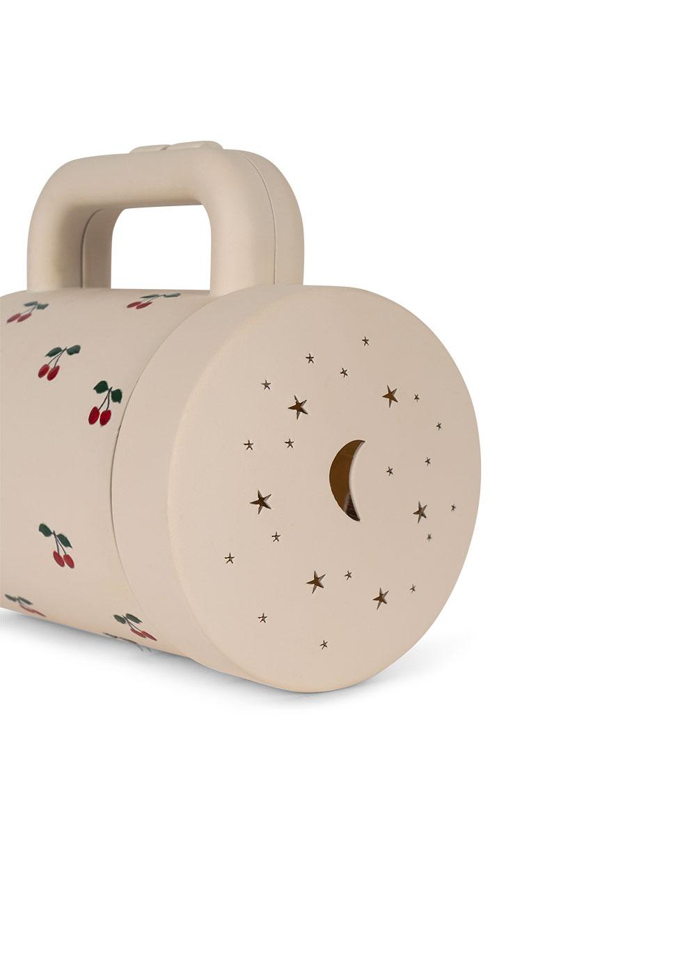 Veľké svietidlo pre deti, pri ktorom môžete meniť farby svetla. Má snímateľnú krytku s motívmi hviezdičiek a mesiaca, vďaka ktorej môžete na stenu premietať tieto magické tvary. Svietidlo má na rukoväti dve tlačidlá. Jedným ju zapnete / vypnete a stláčaním druhého meníte farbu svetla. Skvelá hračka aj praktická pomôcka. S USB dobíjaním.