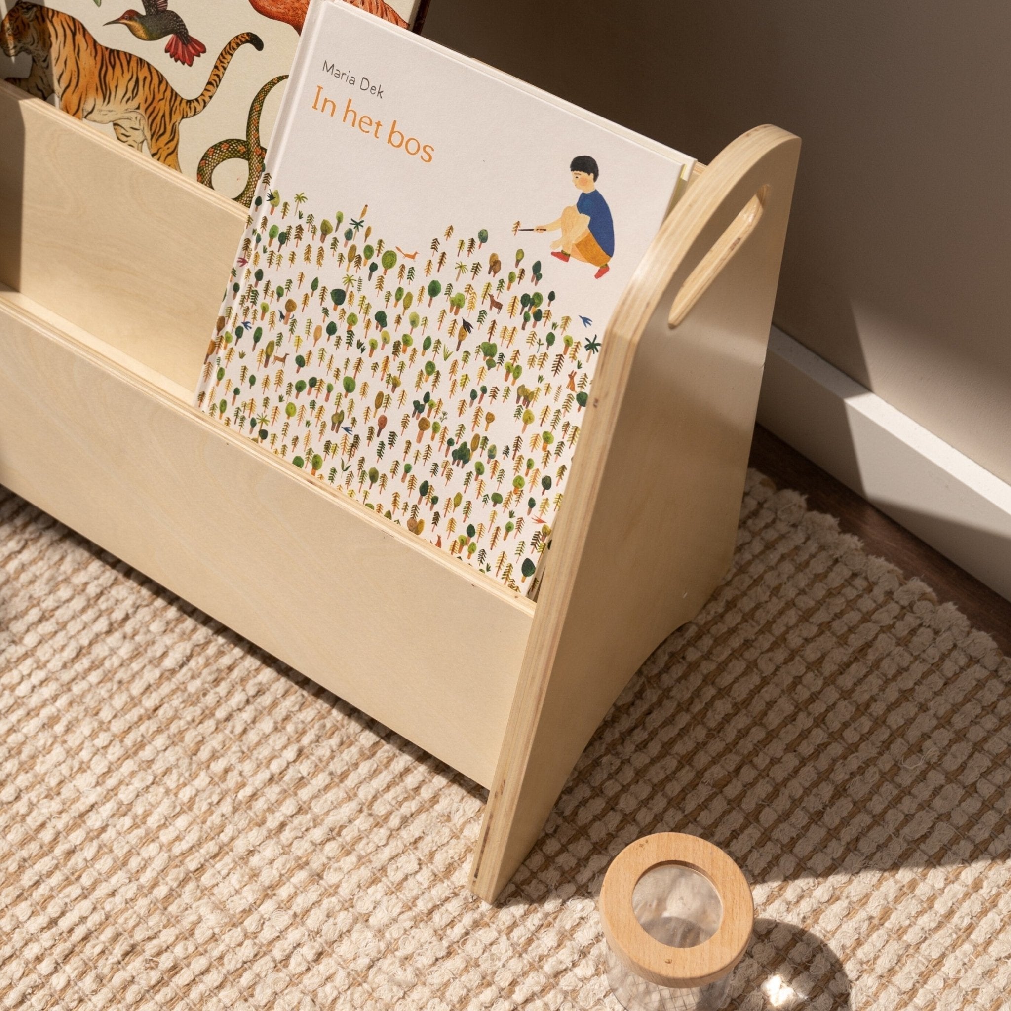 Malá prenosná knižnica, ktorá bude pre deti prvá vlastná. Môžete ju umiestniť kamkoľvek vo vašom byte či dome a ľahko ju prenášať. Knižky sú v nej krásne pre oči, a deťom ľahko prístupné – sami  si tak môžu knižku vybrať a z knižnice vytiahnuť.