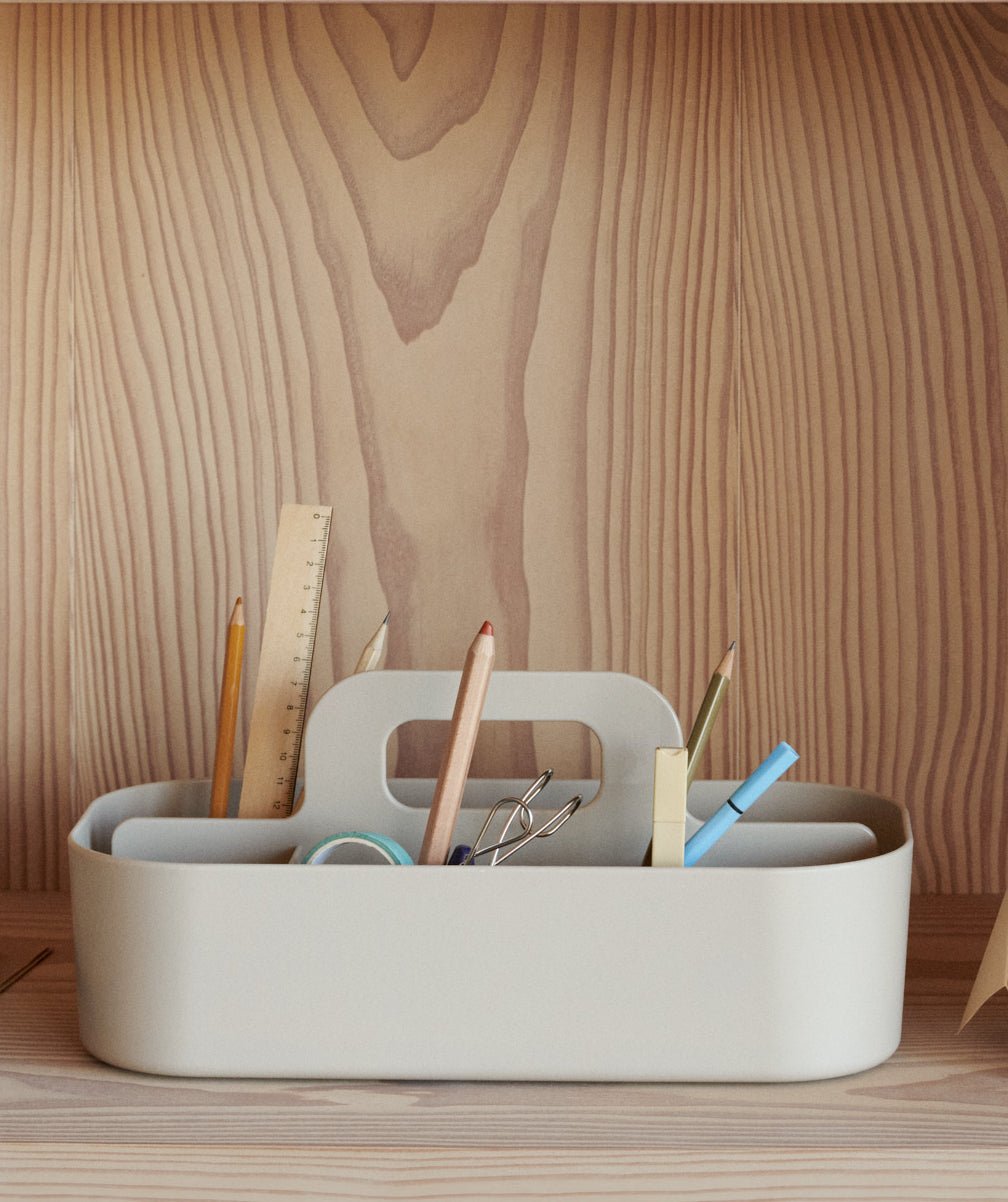 Perfektný a praktický doplnok na detský písací stôl aj stolček, kde si malé deti kreslia. Ideálny na pastelky, nožnice a ďalšie písacie a kresliace potreby. So štrnástimi oddielmi, aby všetko malo svoje miesto. S praktickým držadlom, aby sa organizér dobre prenášal.