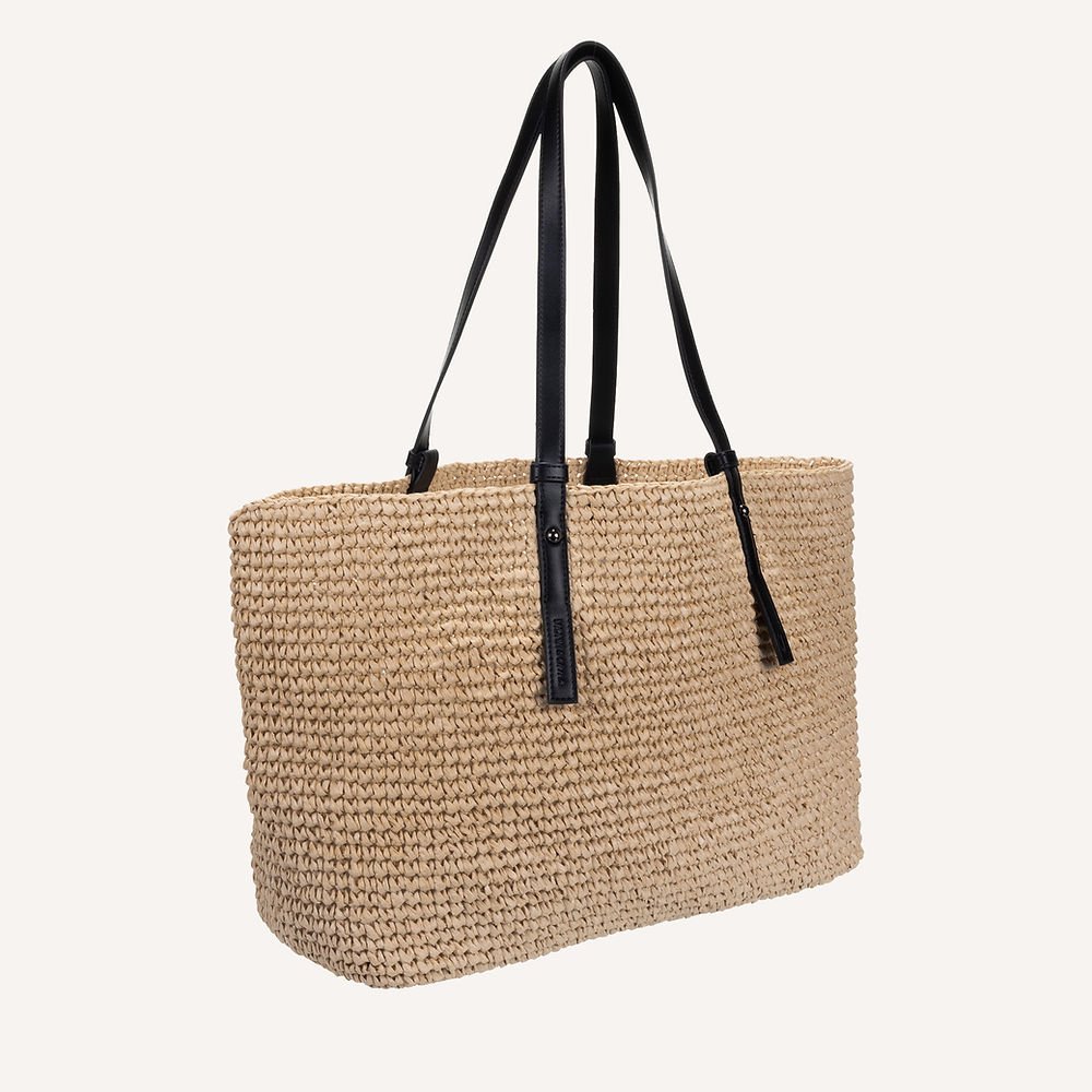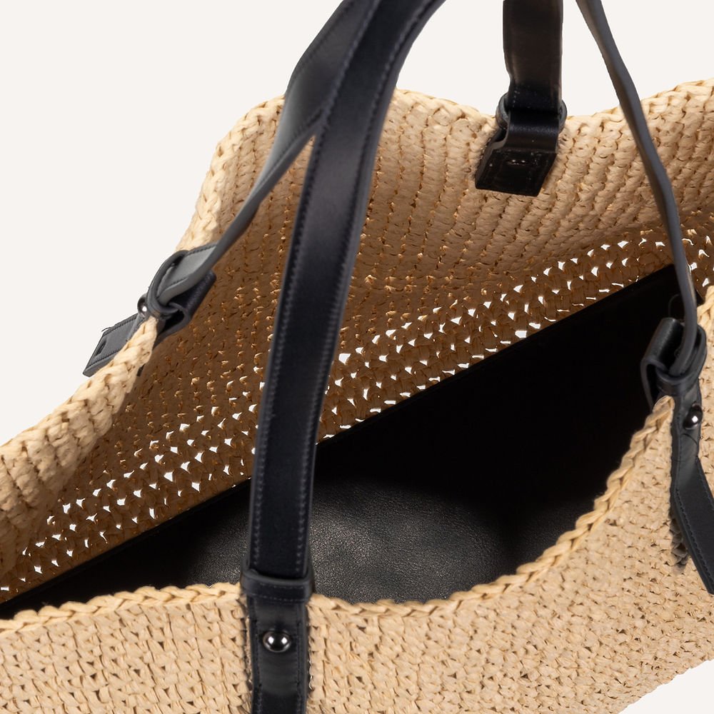 Elegantná taška na pláž, na trhy, v lete do mesta. Má obdĺžnikové dno a popruhy z umelej kože. Ideálna na deň aj neformálny večer, doplní uvoľnené aj sofistikované outfity.