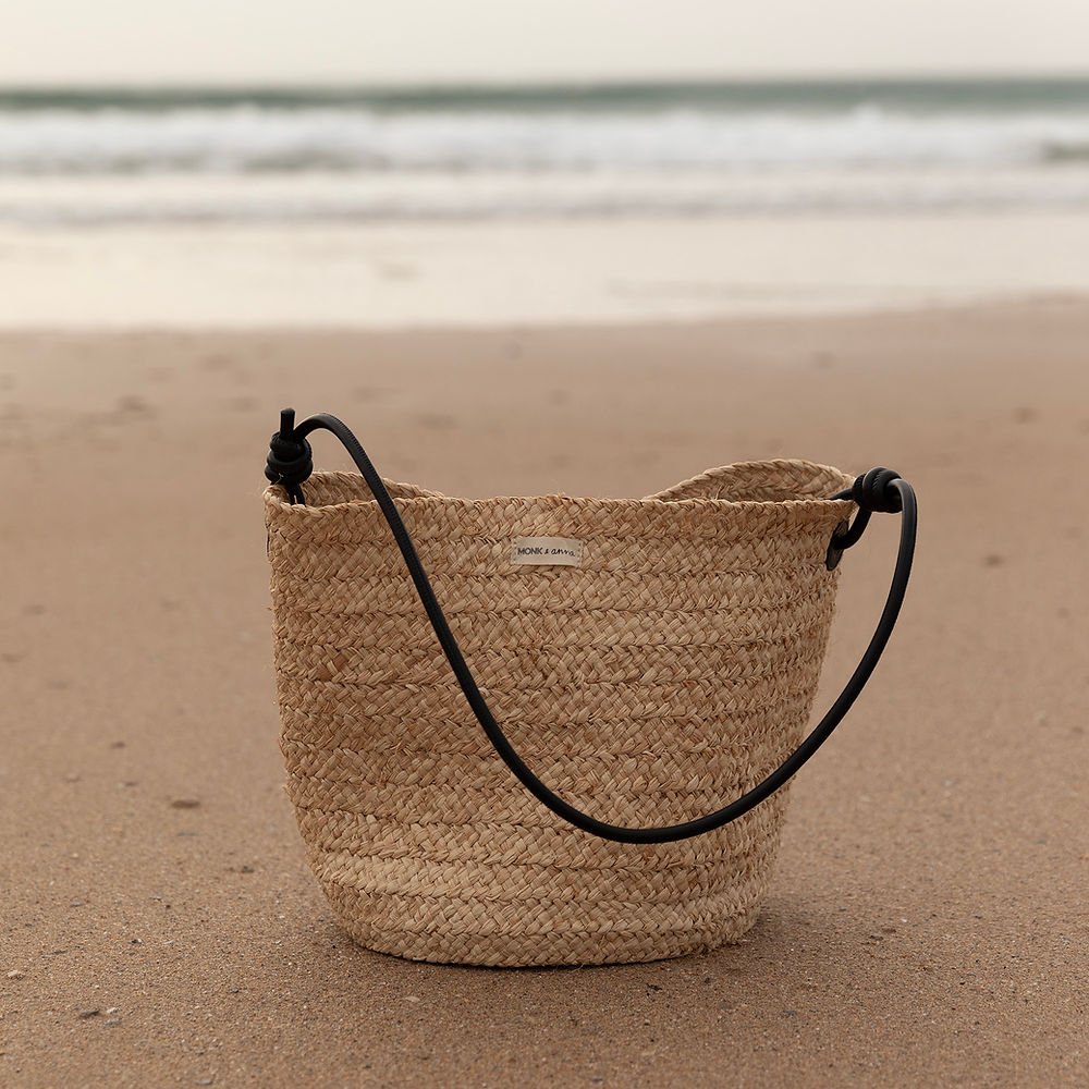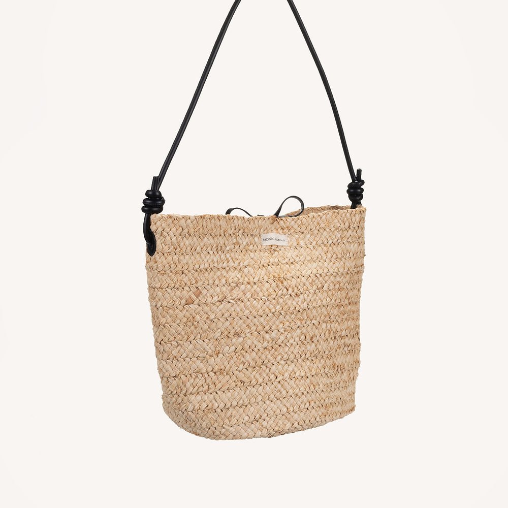 Na pláž, na trhy, v lete do mesta. Elegantná taška vyrobená z vlákna získaného z listov palmy rafie. Má okrúhle dno a popruhy pre bezpečné uzatvorenie. Ideálna na deň aj neformálny večer, doplní uvoľnené aj sofistikované outfity.