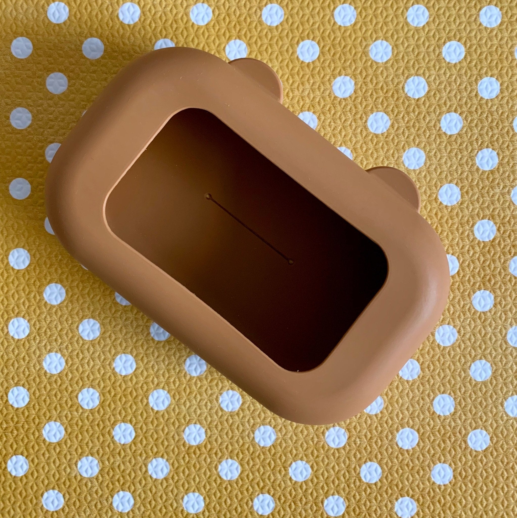 Silikónový obal na vlhčené obrúsky s roztomilými medvedími uškami je perfektným riešením, pokiaľ nechcete nechať nepekné balenie vlhčených obrúskov na prebaľovacom pulte alebo inde v domácnosti. S úzkym otvorom na vrchnej strane, ktorým pretiahnete vlhčený obrúsok.