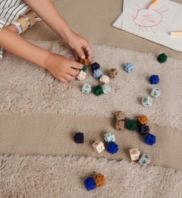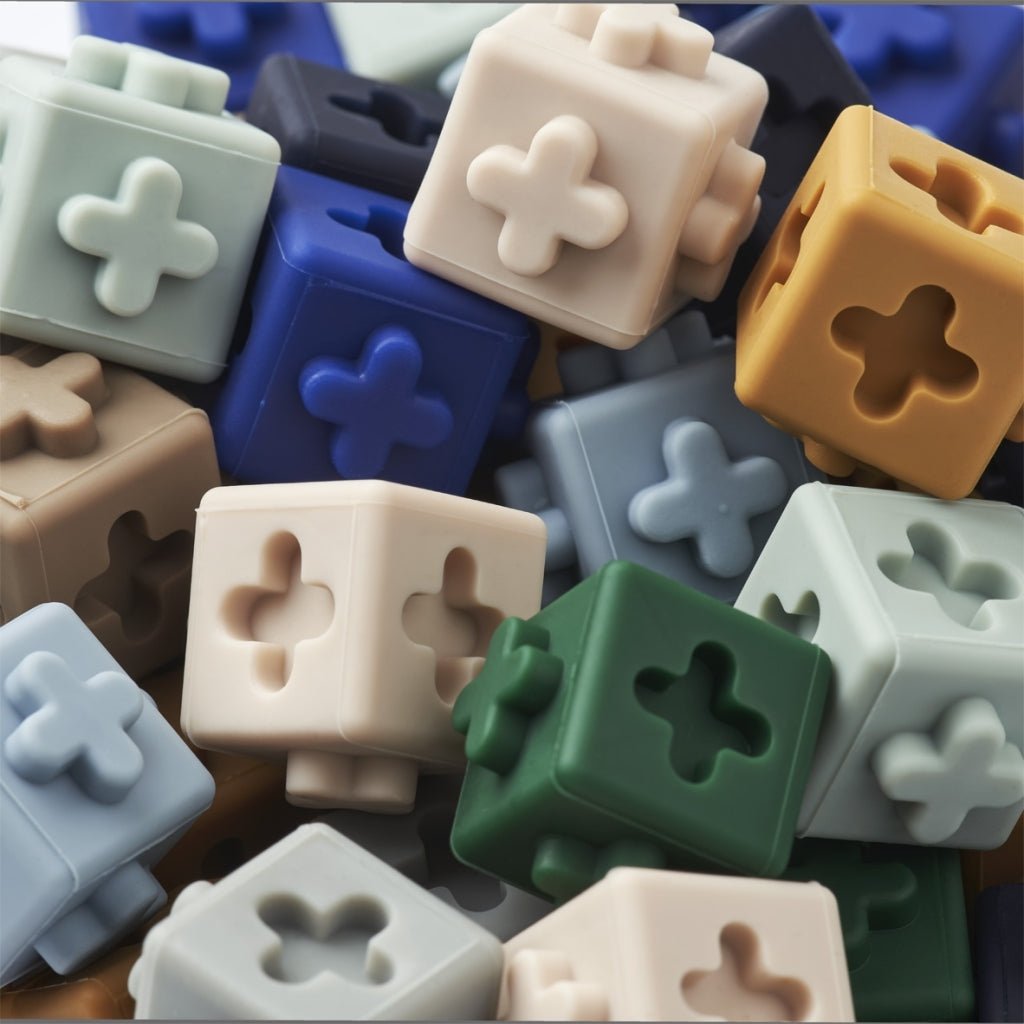 Sada farebných kociek z príjemného 100% silikónu zaručuje hodiny kreatívnej hry, či už na stole, alebo na podlahe.