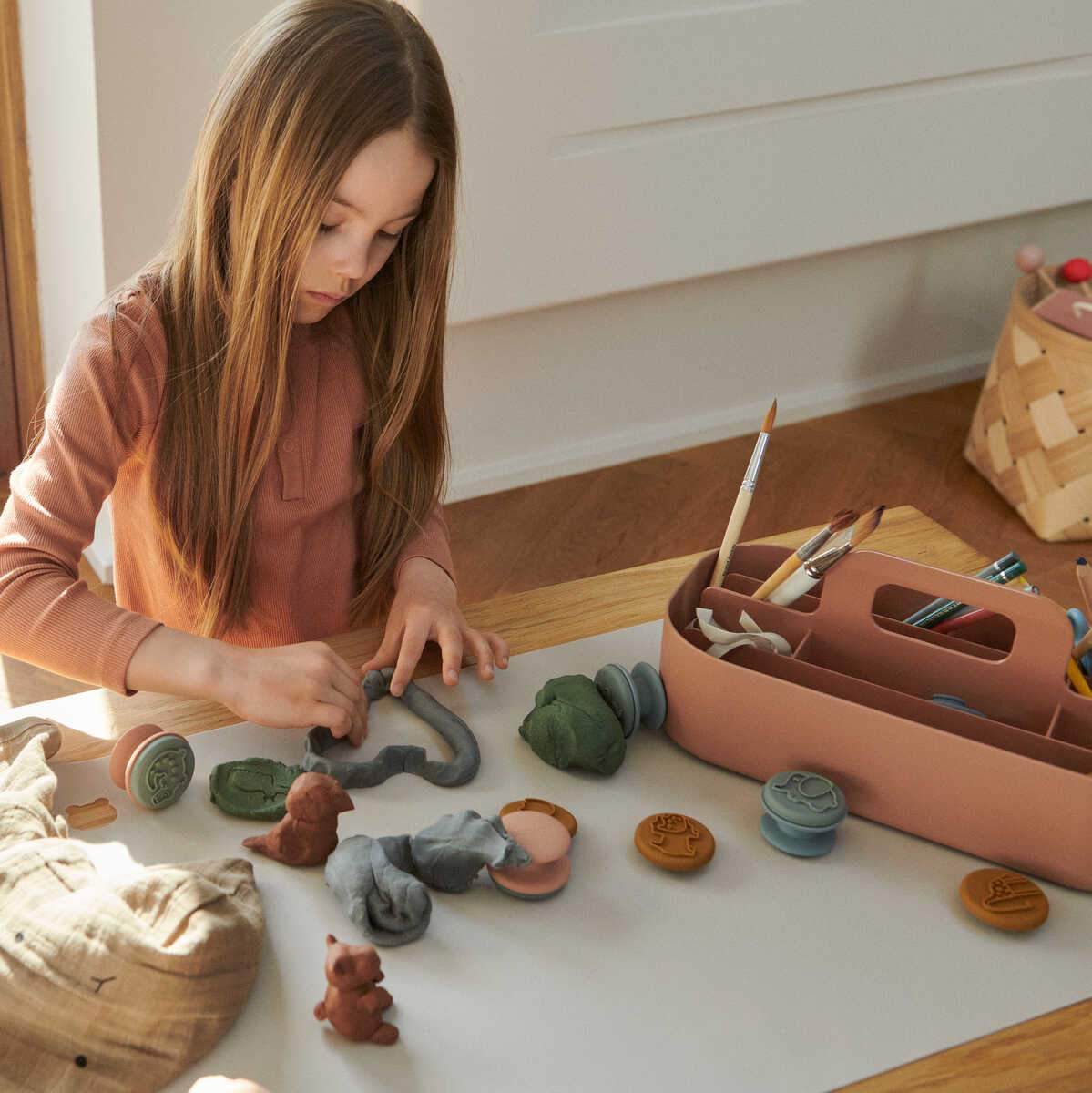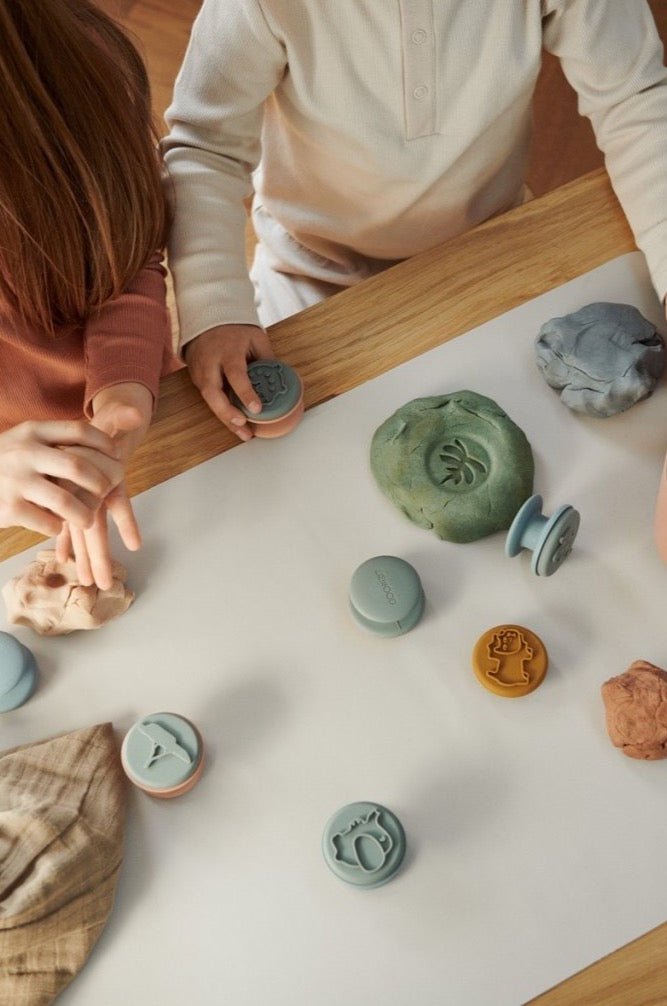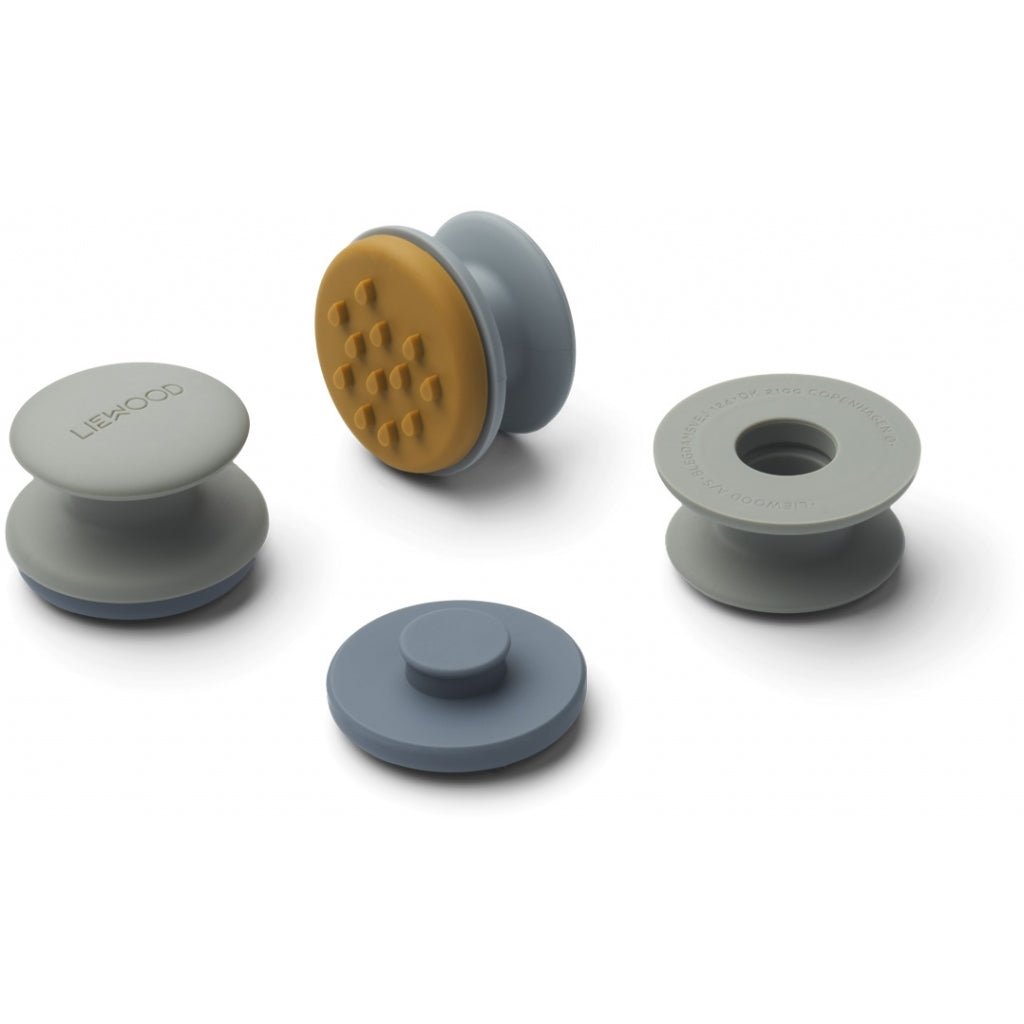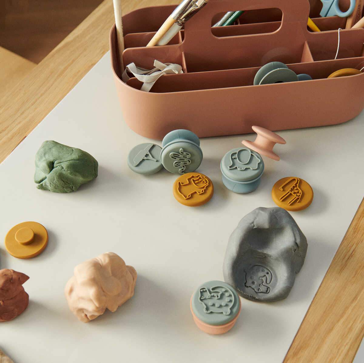 Zábavné a hravé. Klasické hračky v podaní dánskej značky Liewood. Pečiatky sú vyrobené zo 100% silikónu bez BPA, na dotyk sú veľmi príjemné a v prstoch nekĺžu. V balení nájdete osem pečiatok s rôznymi obrázkami, ktoré meníte na štyroch uzáveroch. Pečiatky sa dodávajú v pevnej krabičke, v ktorej ich môžete uchovávať.