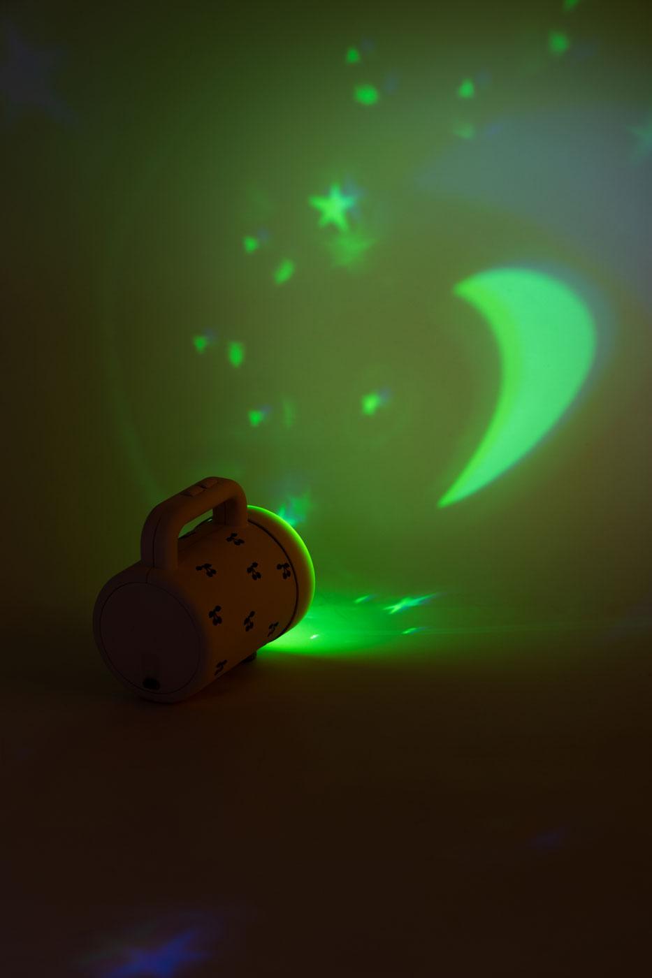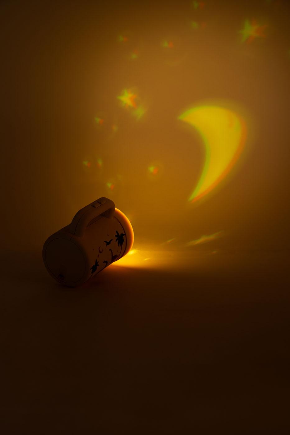 Veľké svietidlo pre deti, pri ktorom môžete meniť farby svetla. Má snímateľnú krytku s motívmi hviezdičiek a mesiaca, vďaka ktorej môžete na stenu premietať tieto magické tvary. Svietidlo má na rukoväti dve tlačidlá. Jedným ju zapnete / vypnete a stláčaním druhého meníte farbu svetla. Skvelá hračka aj praktická pomôcka. S USB dobíjaním.