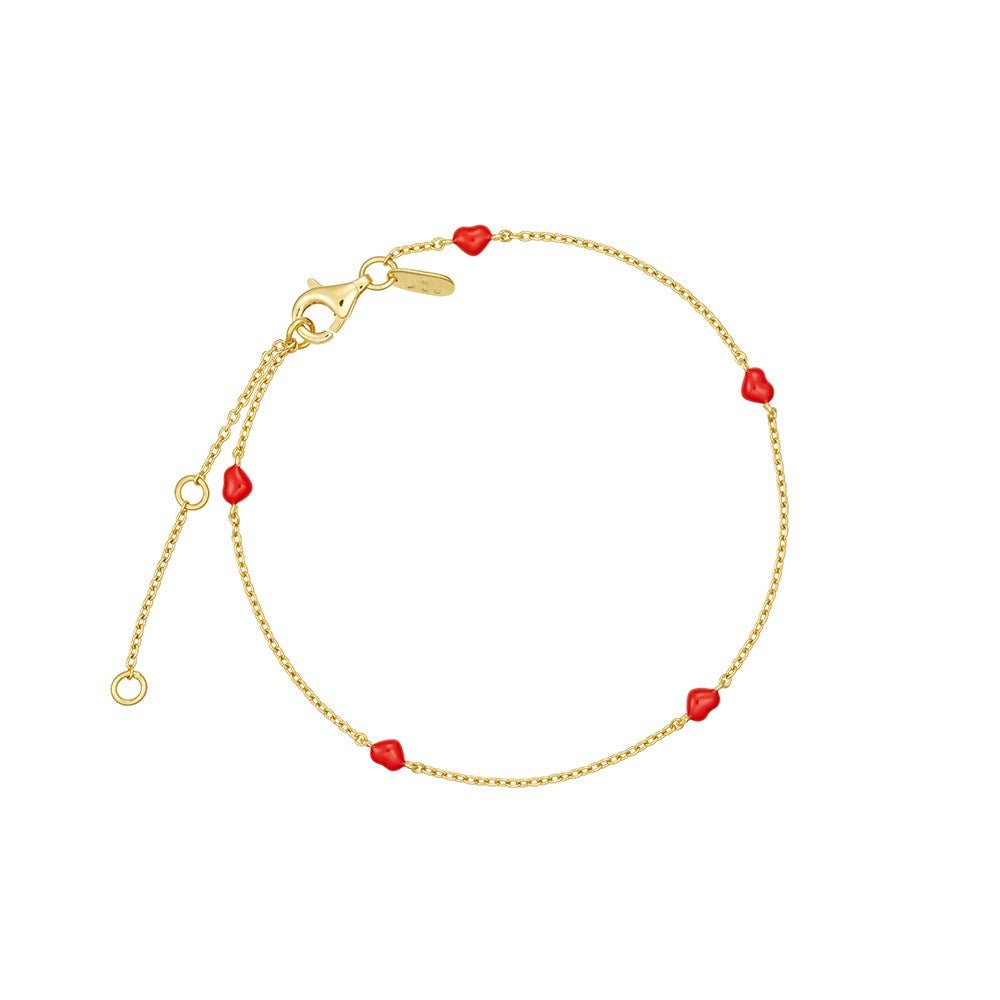 Krásny šperk s atraktívnymi detailmi malých červených srdiečok. Z kolekcie Little Big Love. Veľkostne nastaviteľný - zapínanie v troch dĺžkach. Ženský, pôsobivý sám o sebe, alebo ešte osobnejšie v kombinácii so šperkami Design Letters s písmenami.