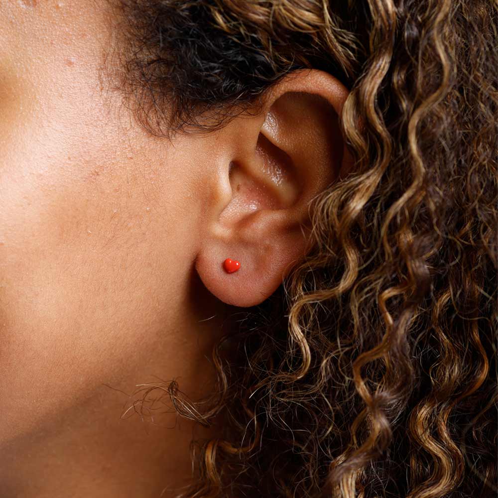 Náušnice z kolekcie Little Big Love. Minimalistické a zároveň krásne šperky s malým červeným srdiečkom.