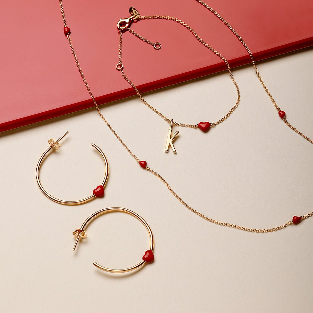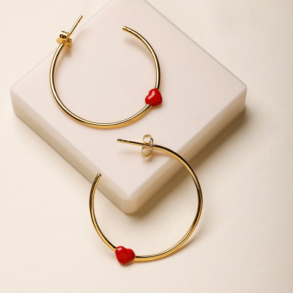 Kruhové náušnice z kolekcie Little Big Love s detailom malého červeného srdiečka. Minimalistické a zároveň pôsobivé šperky.