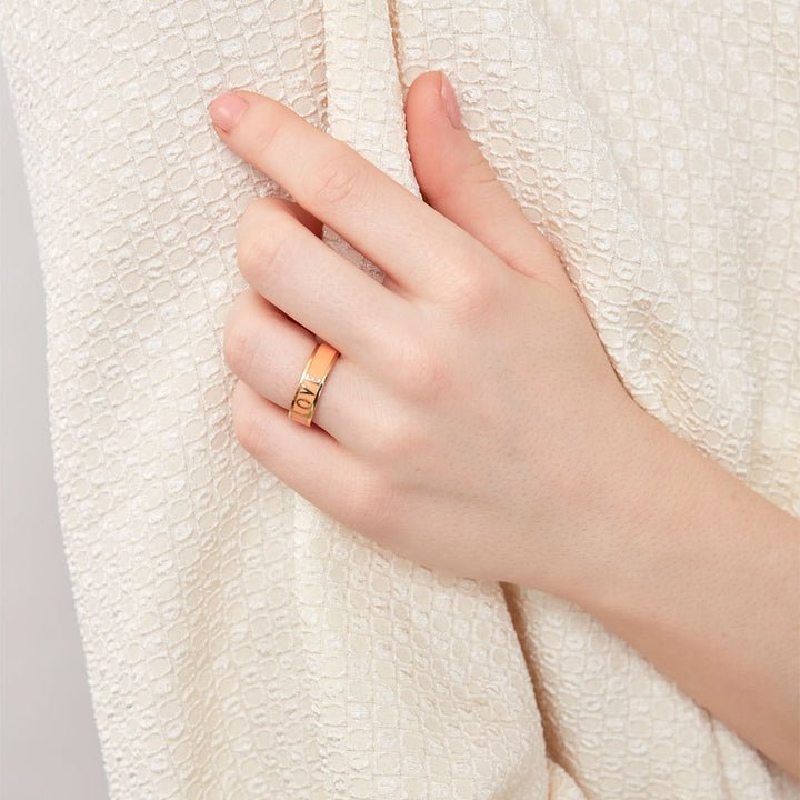 Povedzte to prsteňom. Prsteň z pozláteného striebra v kombinácií s farebným smaltom, v ktorom je napísané LOVE. Krásny darček k narodeniu dieťaťa, k narodeninám a aj ako darček na Valentína.