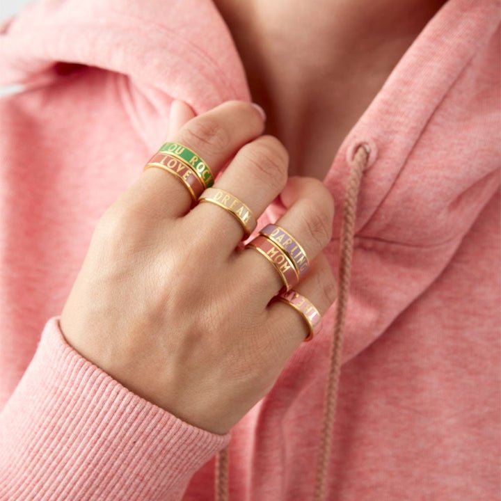 Povedzte to prsteňom. Prsteň z pozláteného striebra v kombinácií s farebným smaltom, v ktorom je napísané LOVE. Krásny darček k narodeniu dieťaťa, k narodeninám a aj ako darček na Valentína.