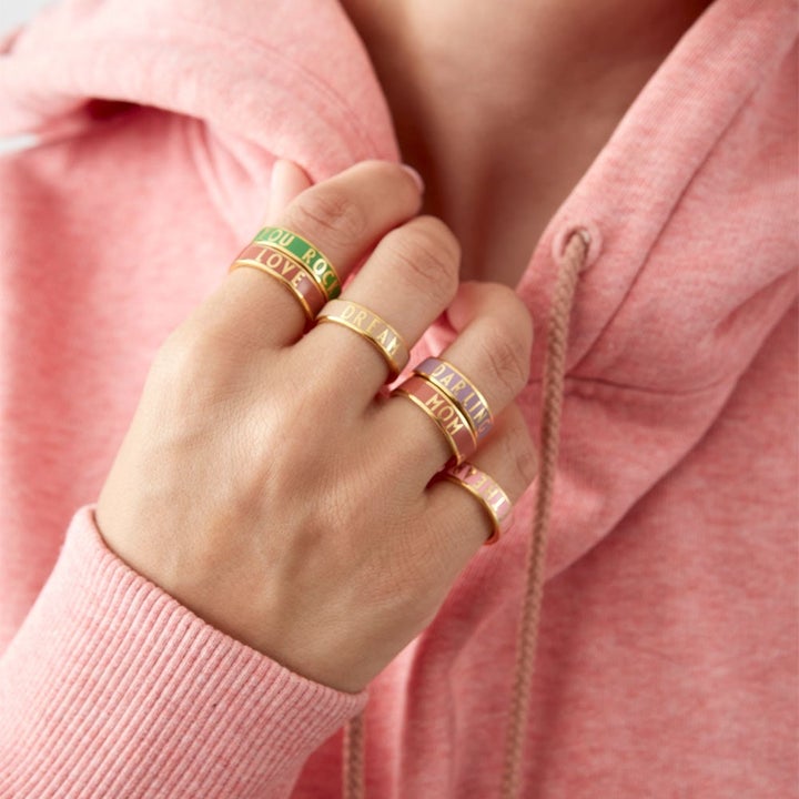 Povedzte to prsteňom. Prsteň z pozláteného striebra v kombinácií s farebným smaltom, v ktorom je napísané, že ste "mama" - MOM. Krásny darček k narodeniu dieťaťa, k narodeninám a aj ako darček na Valentína.