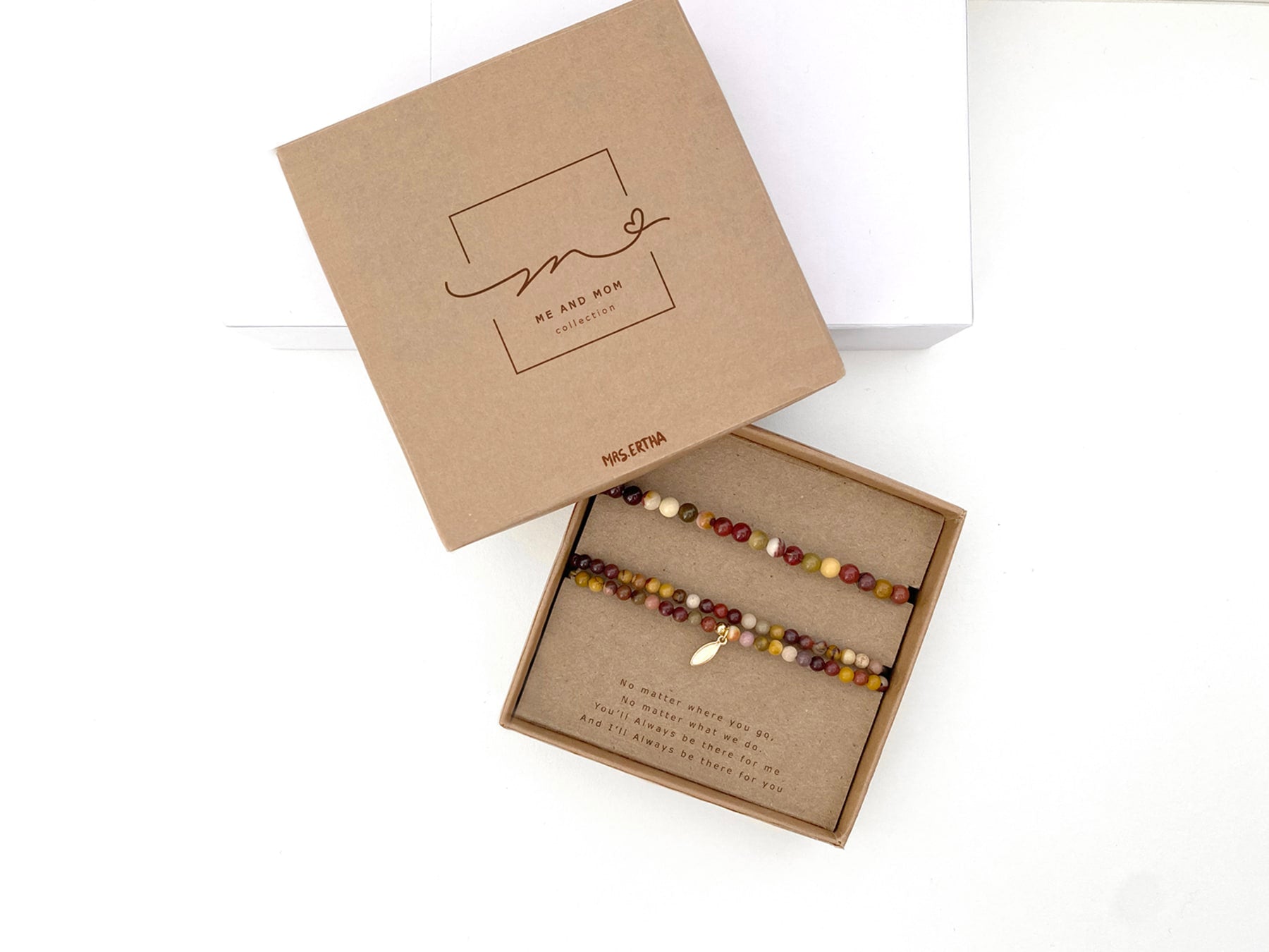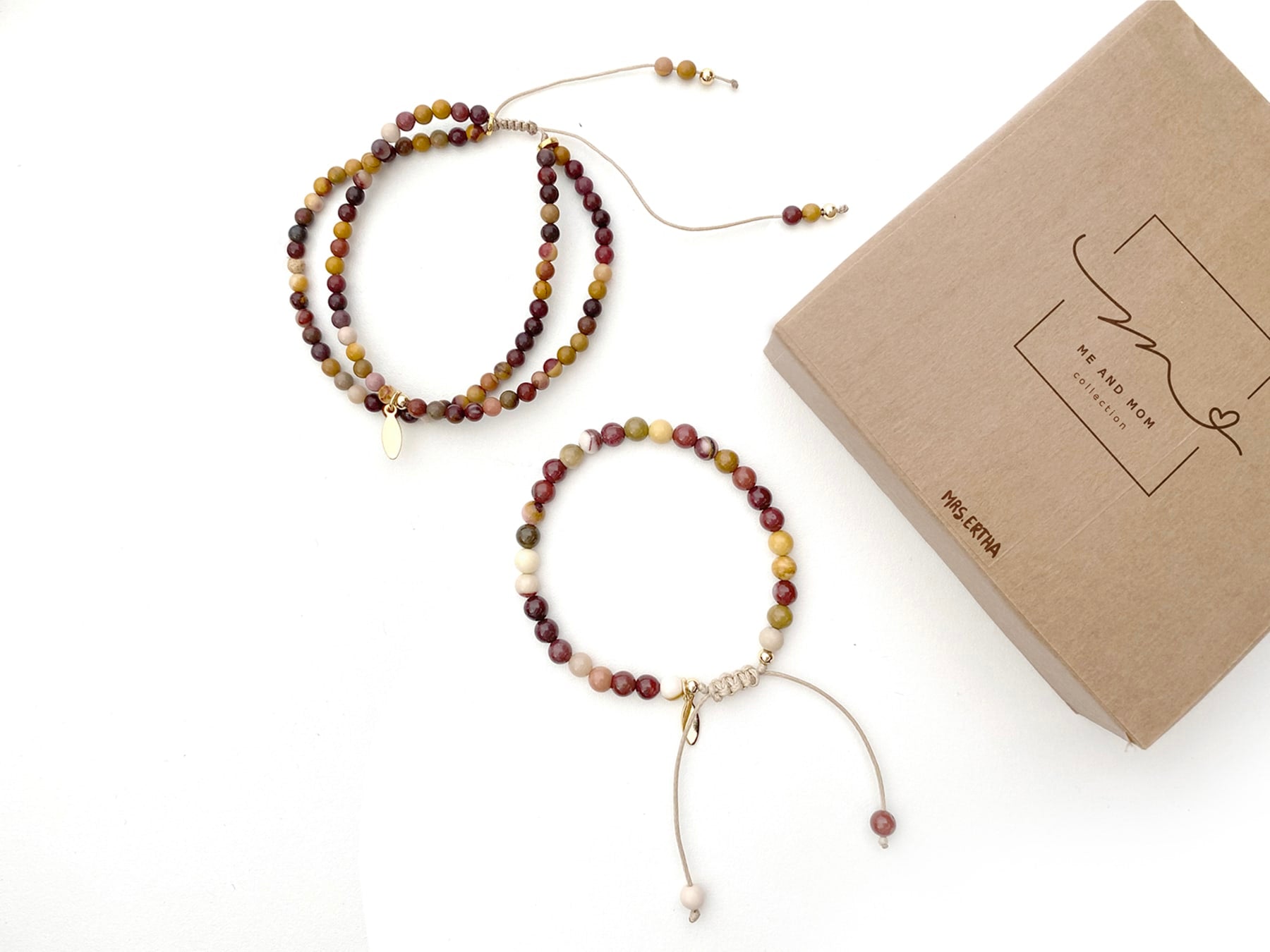Set náramkov z prírodných kameňov pre mamu a dcéru z kolekcie Me & Mom, ktorými vyjadríte vaše jedinečné puto. Set obsahuje dva náramky, jeden dvojitý a jeden jednoduchý, oba sú veľkostne nastaviteľné. Krásny darček.