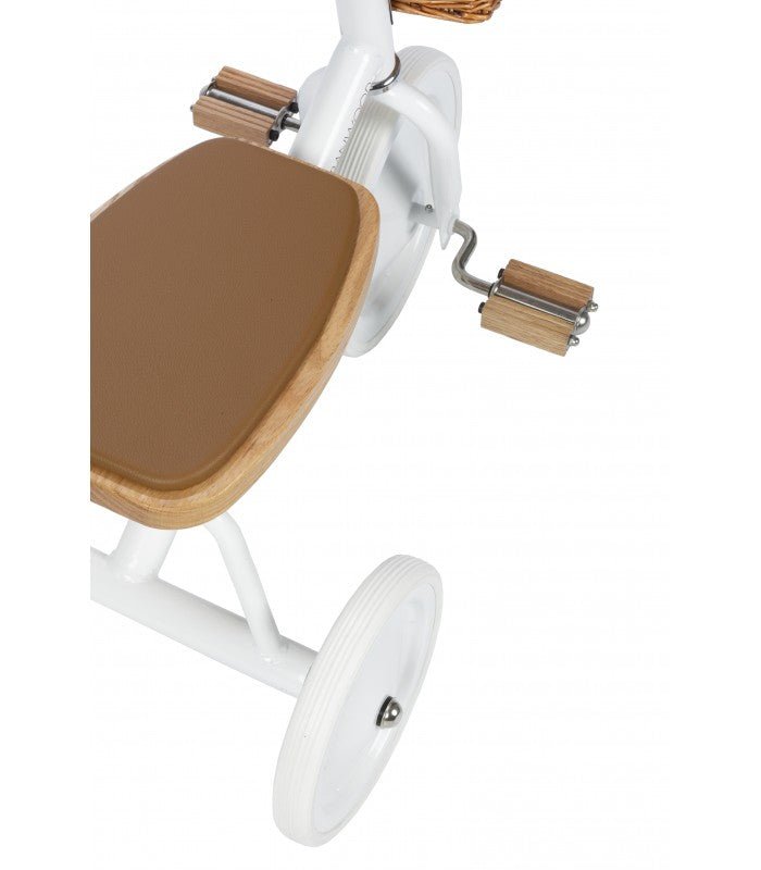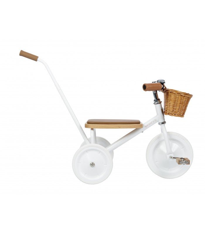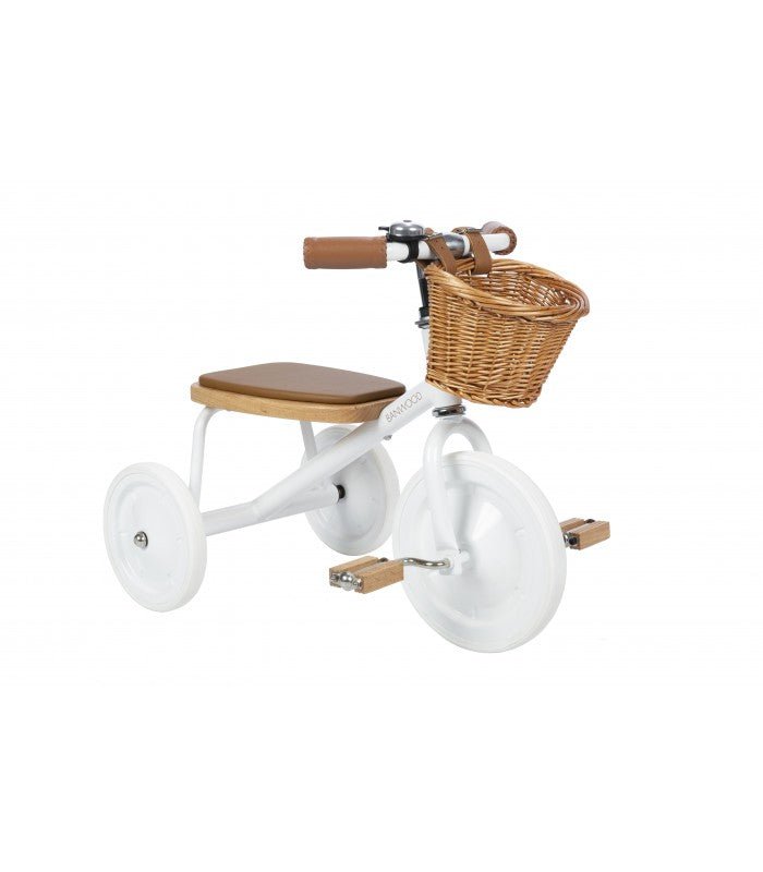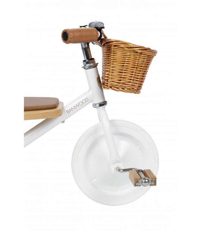 Nadčasová, minimalistická, štýlová, s prúteným košíkom, typickým pre značku Banwood. Trojkolka je vhodná pre deti od dvoch rokov. Dizajnovaná je tak, aby vydržala generácie. Má mäkko polstrované dubové sedadlo, pedále z dubového dreva a detaily z vegánskej kože. Prútený košík je štýlovým doplnkom, ktorý si deti zamilujú.