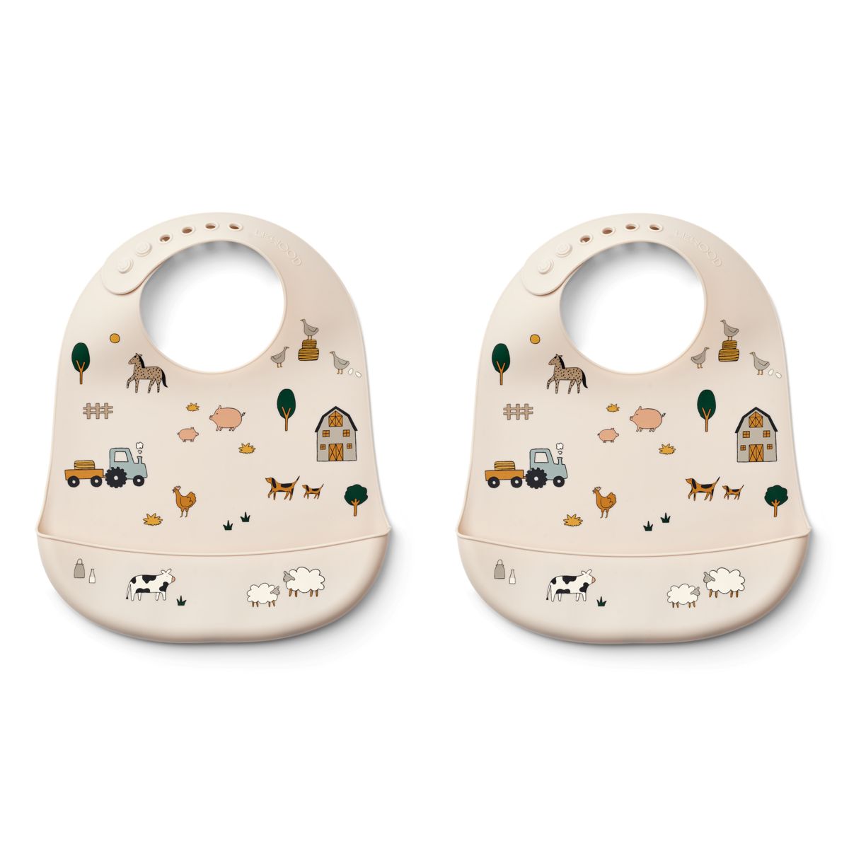 Dva silikonové podbradníky LIEWOOD Tilda Farm / Sandy