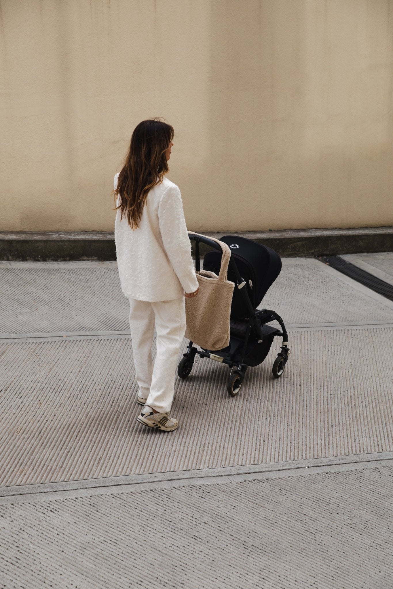 Ručne vyrobená v Európe s certifikáciou Oeko-Tex. S dostatočne dlhými uchami, aby sa dala dať cez rukoväť kočíku, a štýlovo cool cez rameno, aj keď so sebou deti nemáte. Priestorná, mäkká "teddy" taška.
