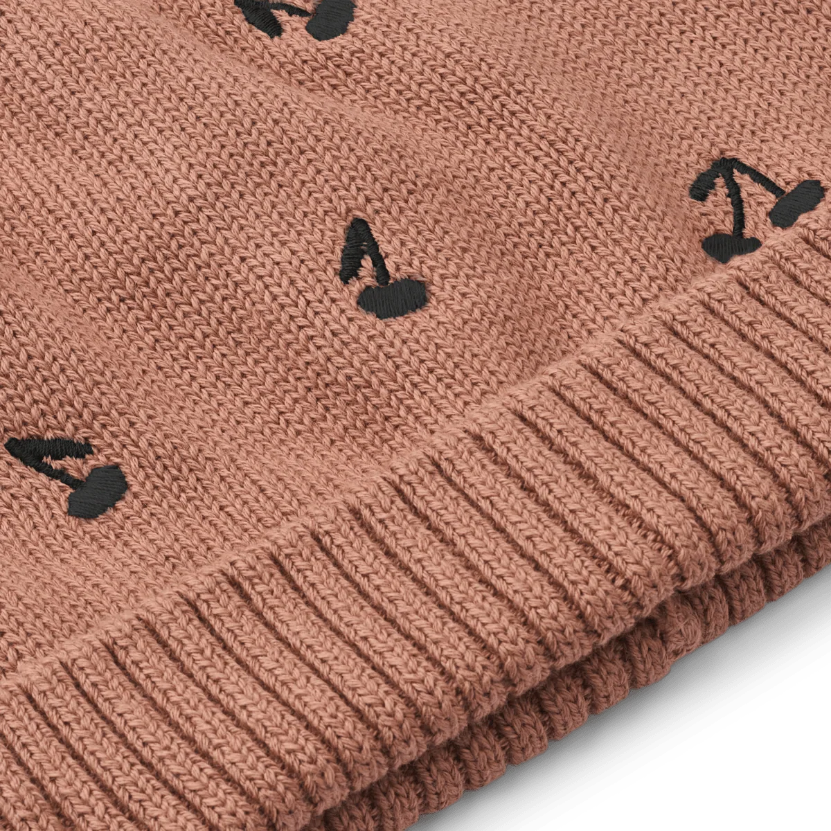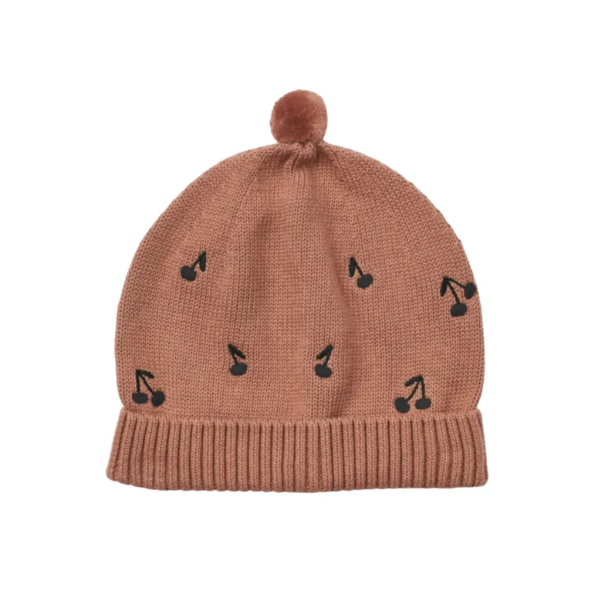 Pletená detská čiapka s výšivkami a roztomilou brmbolcom. Teplá, pohodlná a cool. Zo 100% organickej bavlny.