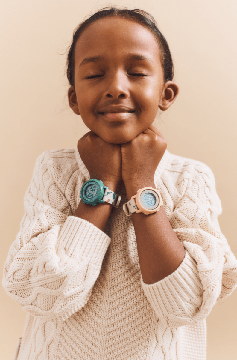 Digitálne náramkové hodinky pre deti od 4 rokov. Vodeodolné, funkcia alarmu a stopiek, formát času 12/24 h, farebné podsvietenie displeja, nastaviteľný silikónový pásik.