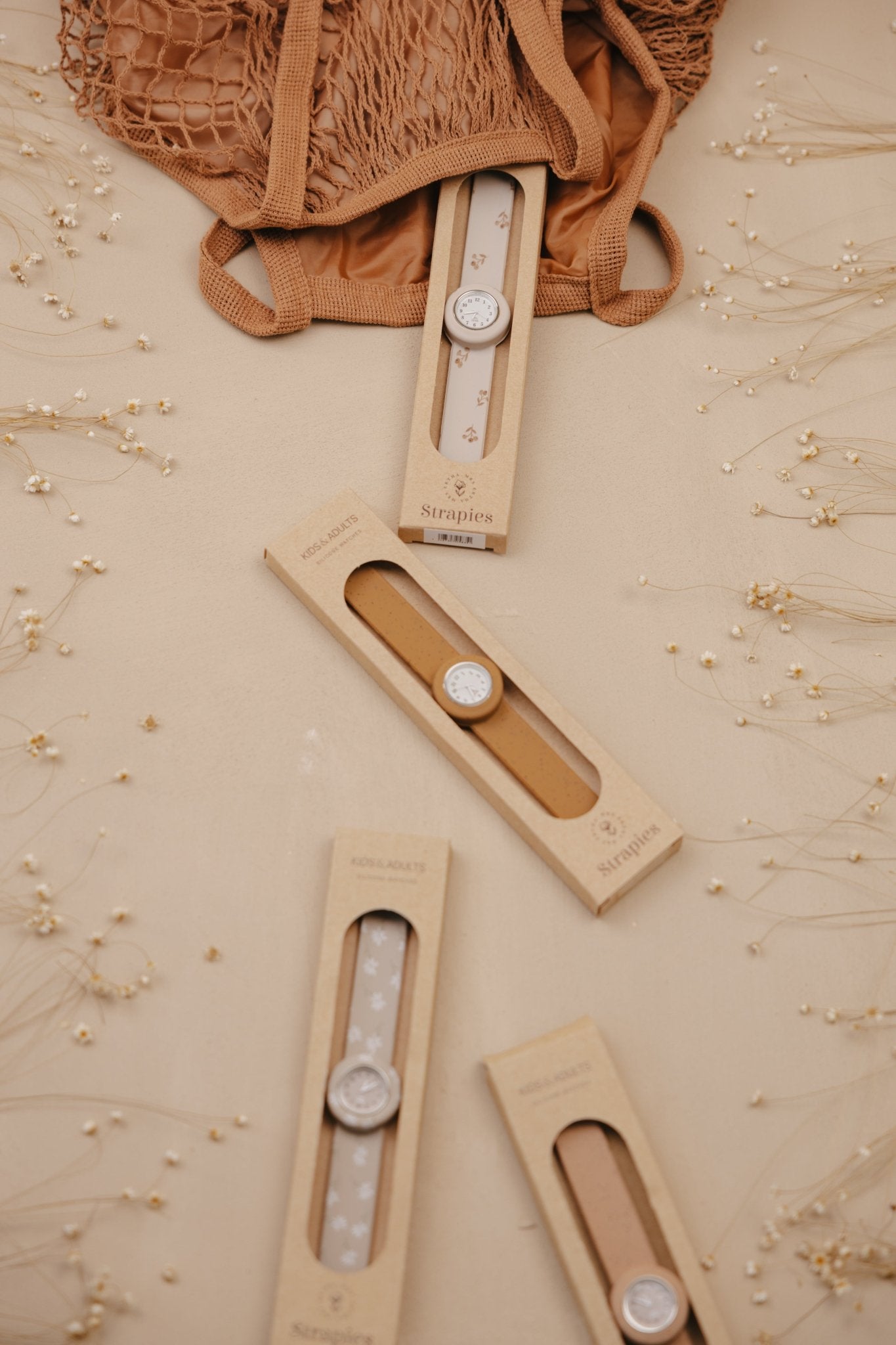 Hodinky Strapies sú praktickým a zábavným doplnkom, ktorý môže využiť celá rodina. Vyrobené sú z odolného silikónu. Ľahko sa pripínajú na zápästie a prispôsobia sa každej veľkosti ruky – hodinky tak môžu používať deti aj dospelí. Odporúčame ich od 3 rokov.