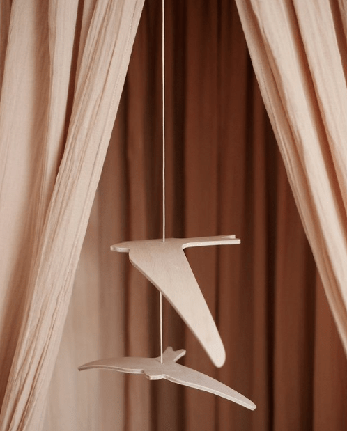 Nežná dekorácia nad postieľku alebo kolísku. Lastovičky Charlie Crane Kano. Zavesiť ich môžete buď od stropu, alebo na drevený držiak, ktorý upevníte na postieľku. Zvoľte variant buď samotných lastovičiek, alebo lastovičiek s držiakom.